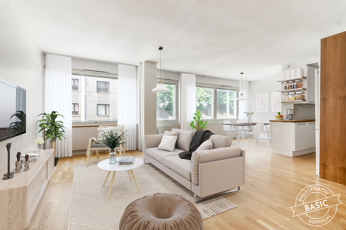 Tarjolla valoisa ja erinomaisella pohjaratkaisulla varustettu kaupunkikoti! Huoneistossa on kaksi hyvän kokoista makuuhuonetta, jossa hyvin säilytystilaa, iso vaatehuone, avokeittiö ruokailutiloineen sekä tilava olohuone. Huoneistossa on putkiremontin yhteydessä uusittu kylpyhuone. Taloyhtiön yhteiskäytössä on juuri putkiremontin yhteydessä uusittu sauna, juuri rakennettu talopesula sekä kuivaushuone, urheiluvälinevarasto, väestönsuoja sekä kellari ja vinttikomero. Taloyhtiössä linjasaneerauksen yhteydessä lisäksi maalataan porrashuoneet, ilmanvaihtojärjestelmä…