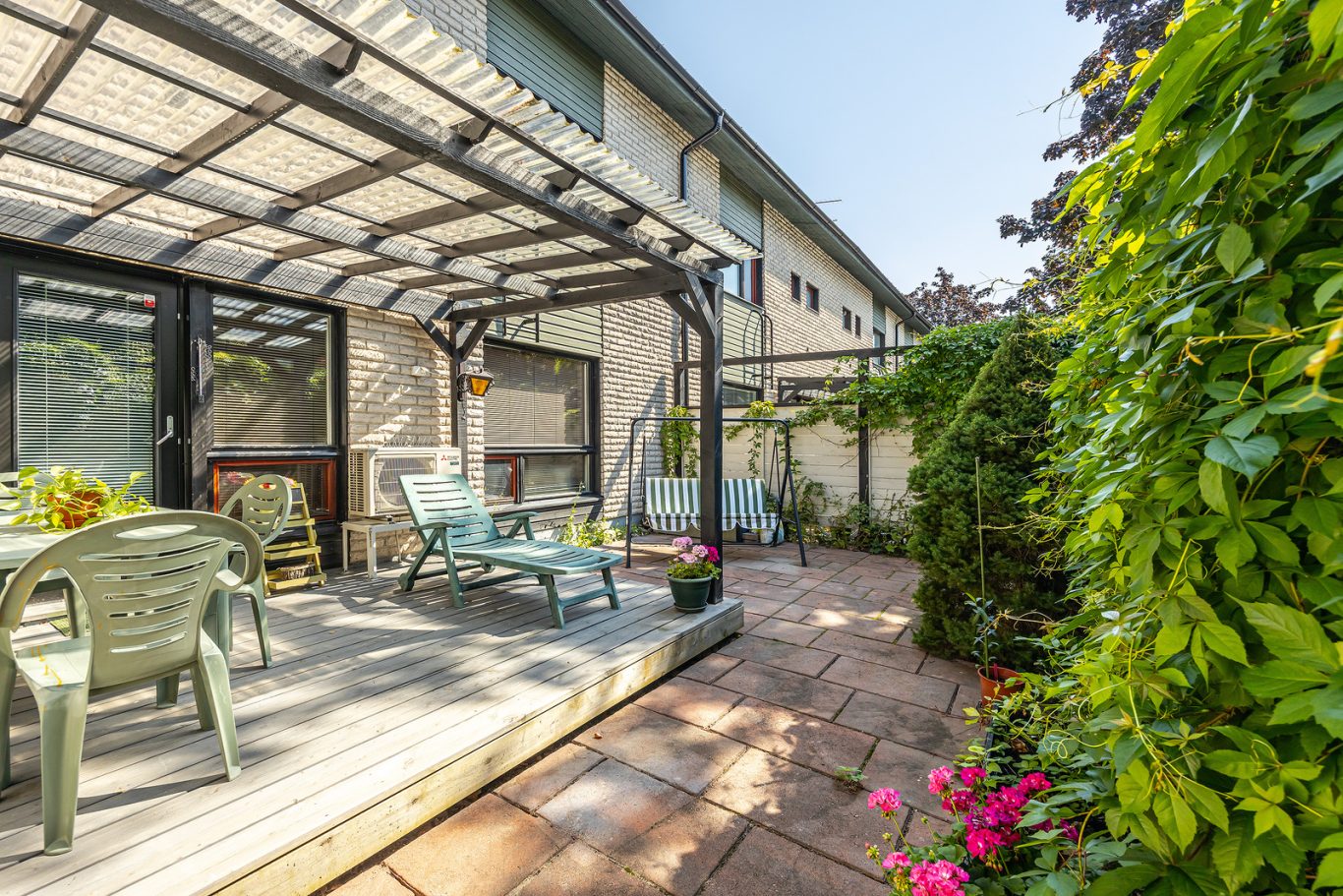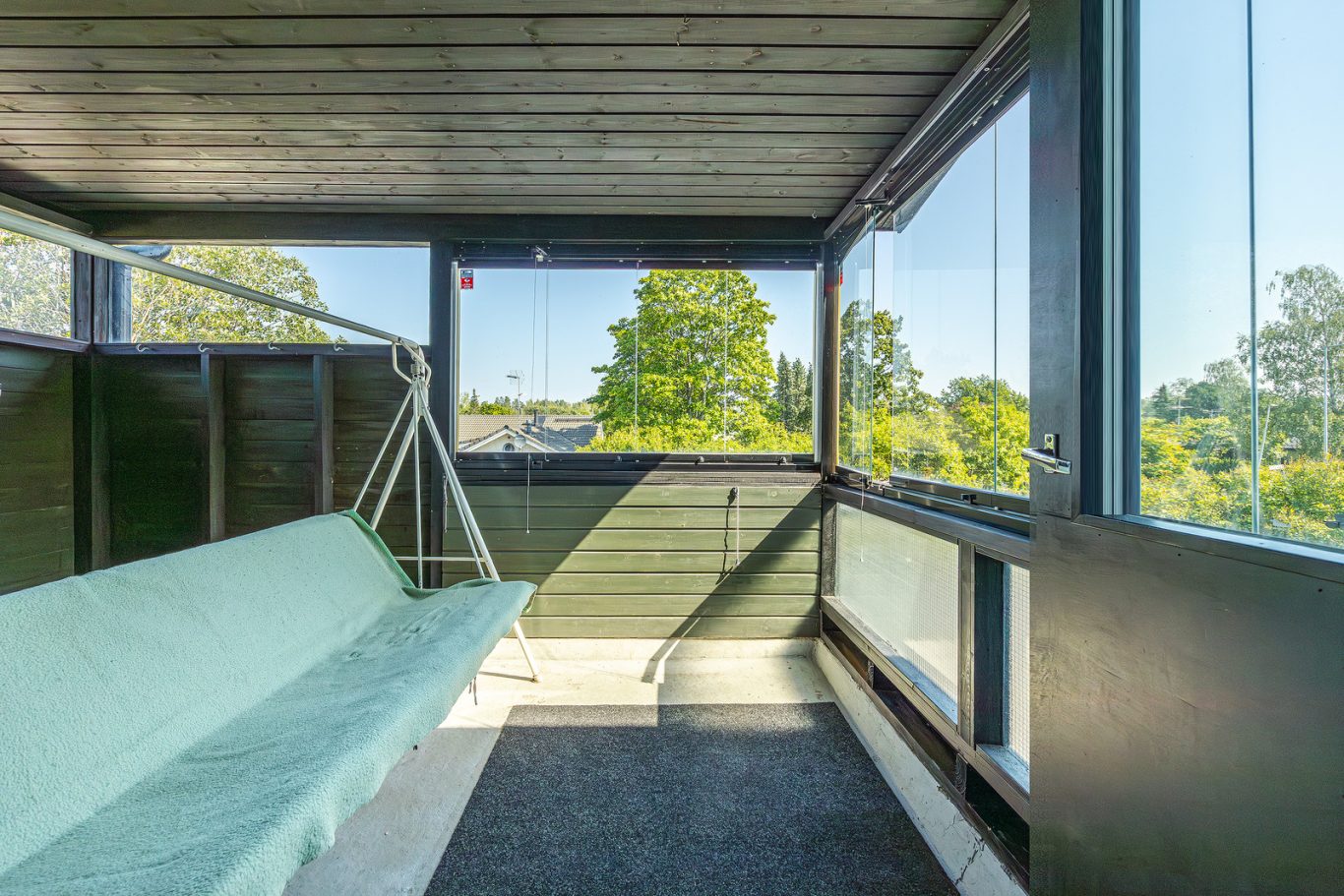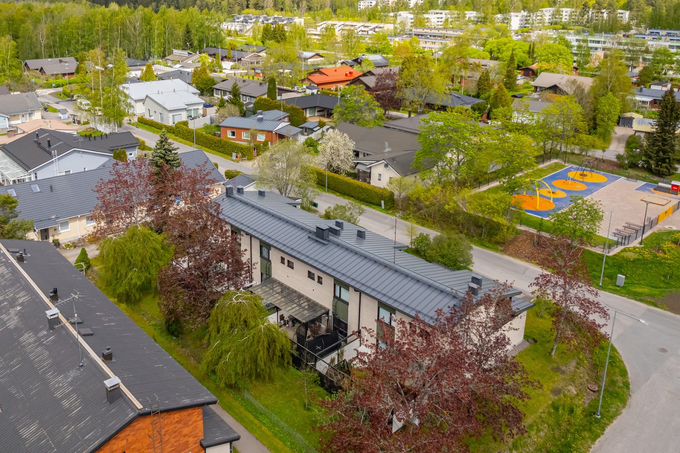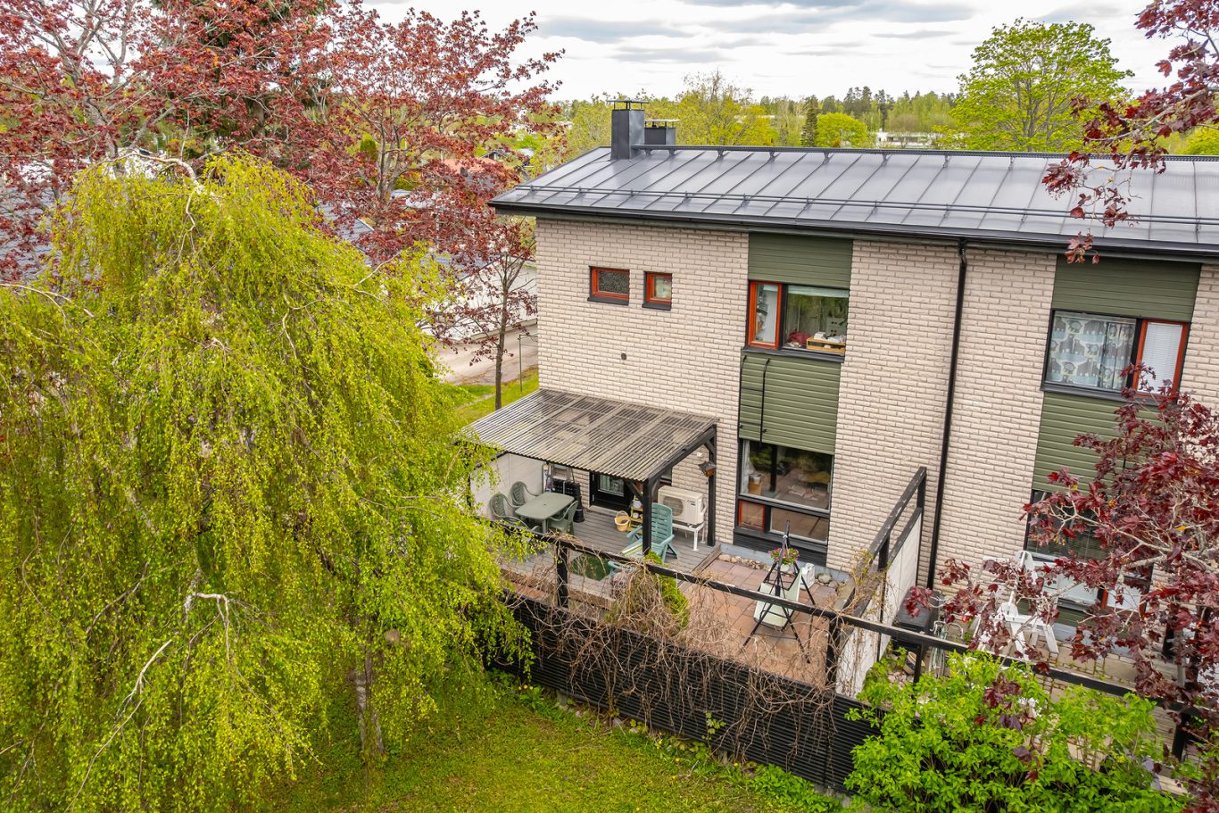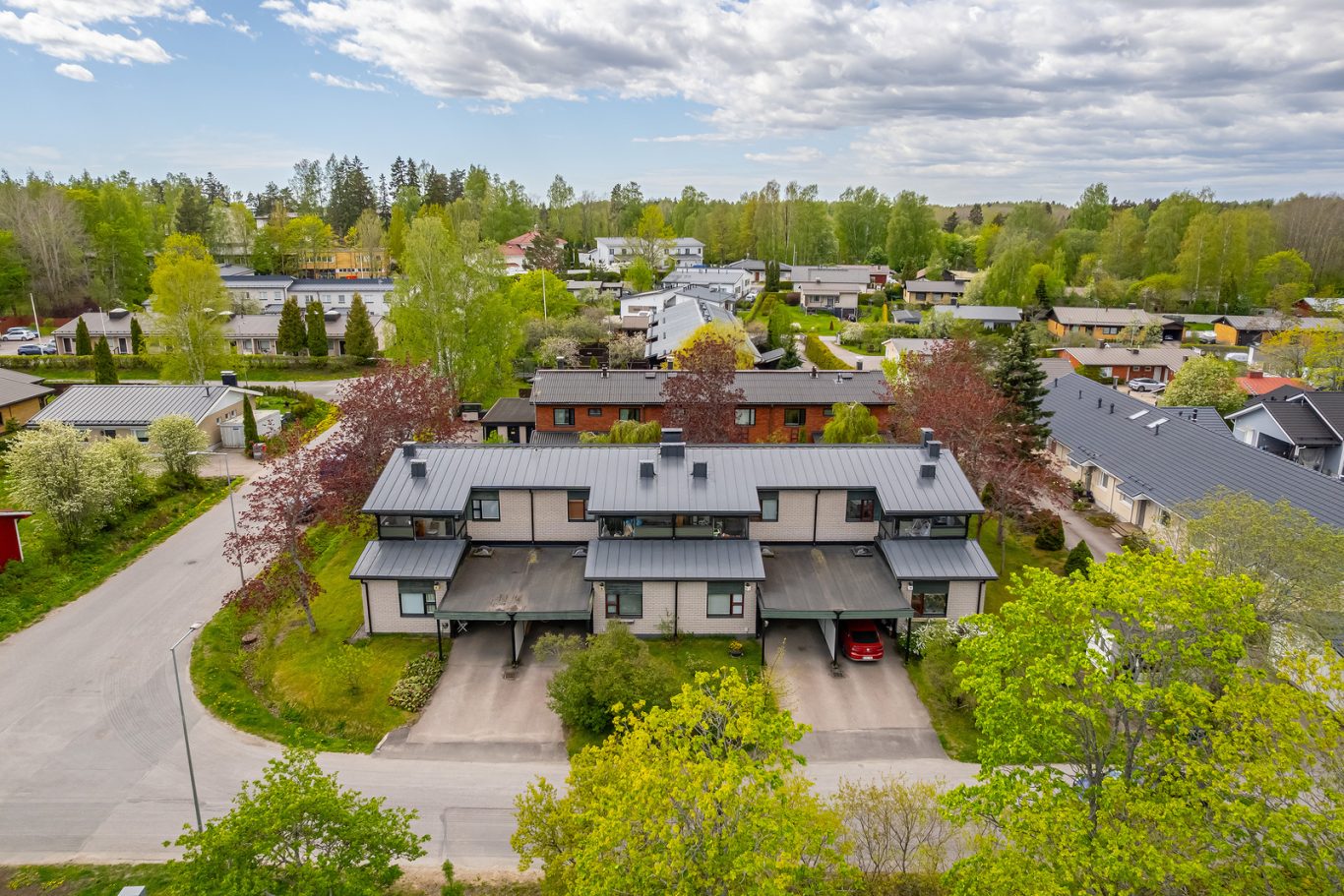 Olohuoneesta on tällä hetkellä erotettu kevyellä väliseinällä ikkunallinen lisähuone, voit valita avaran olohuoneen tai lisähuoneen väliltä elämäntilanteesi mukaan. Olohuoneen yhteydessä on varaava takka luomassa tunnelmaa ja antamassa lämpöä sekä ilmalämpöpumppu lämmitykseen ja viilennykseen. Tilava keittiö ruokailutilalla, alakerran wc. Yläkerrassa on kaksi makuuhuonetta, vaatehuone, 2008 remontoitu kylpyhuone/wc/saunaosasto sekä tilava lasitettu parveke. Suojainen ja kaunis piha-alue, katettu terassi, helppohoitoinen laatoitettu piha. Oma autokatos- ja pihapaikka sekä ulkovarasto on asunnon ulko-oven vieressä.