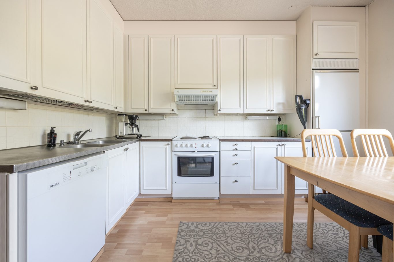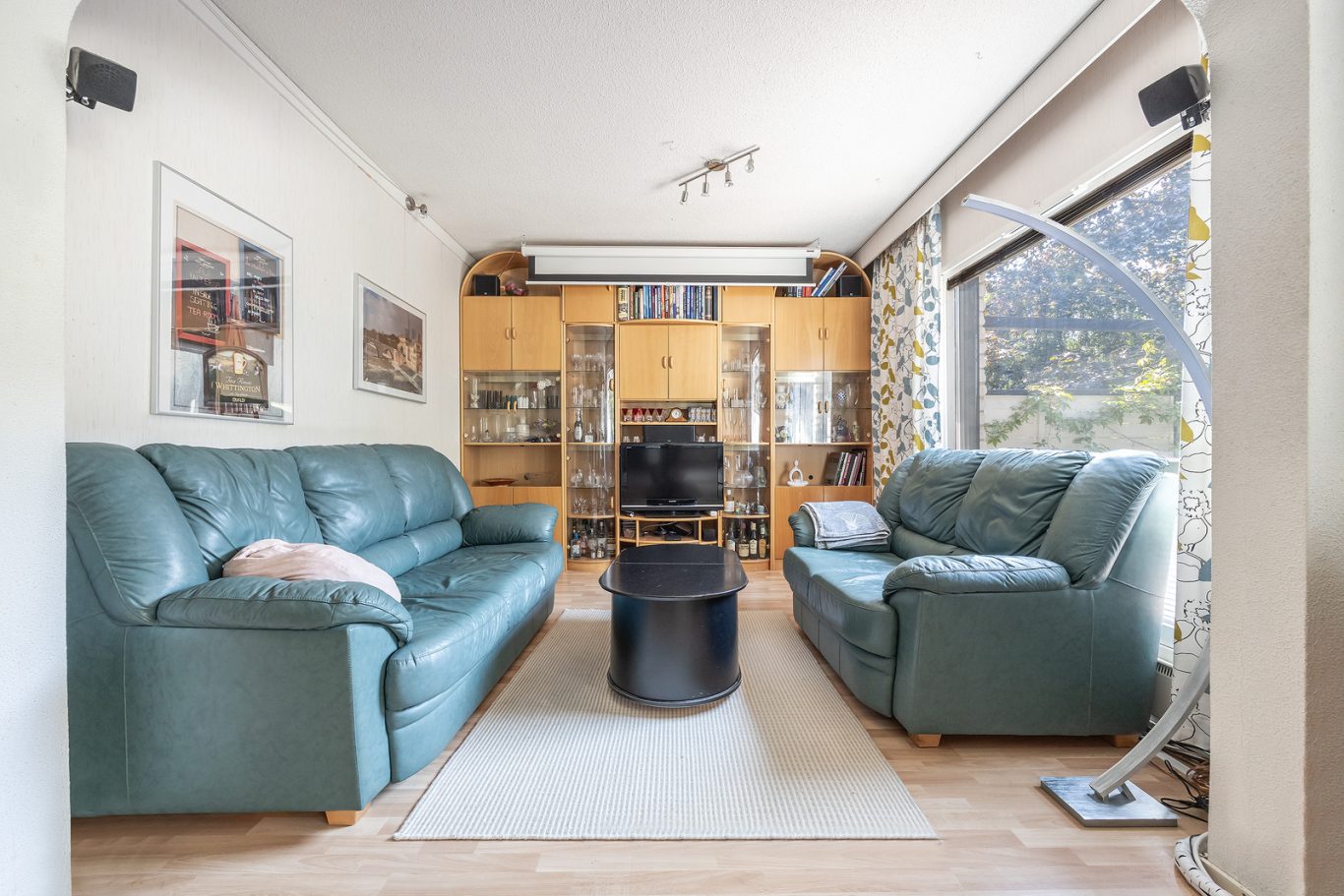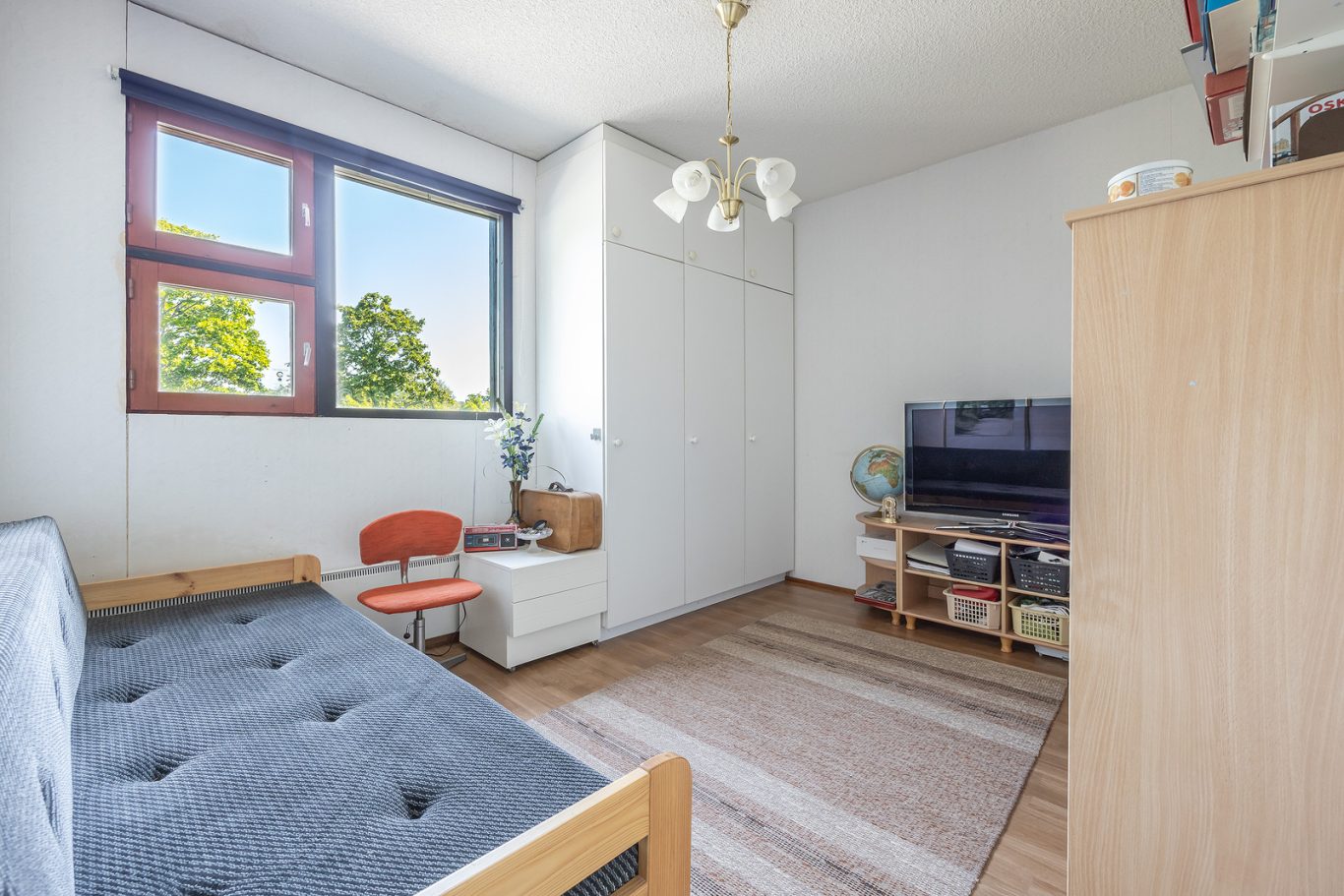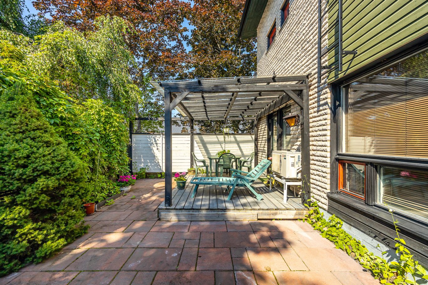 Olohuoneesta on tällä hetkellä erotettu kevyellä väliseinällä ikkunallinen lisähuone, voit valita avaran olohuoneen tai lisähuoneen väliltä elämäntilanteesi mukaan. Olohuoneen yhteydessä on varaava takka luomassa tunnelmaa ja antamassa lämpöä sekä ilmalämpöpumppu lämmitykseen ja viilennykseen. Tilava keittiö ruokailutilalla, alakerran wc. Yläkerrassa on kaksi makuuhuonetta, vaatehuone, 2008 remontoitu kylpyhuone/wc/saunaosasto sekä tilava lasitettu parveke. Suojainen ja kaunis piha-alue, katettu terassi, helppohoitoinen laatoitettu piha. Oma autokatos- ja pihapaikka sekä ulkovarasto on asunnon ulko-oven vieressä.