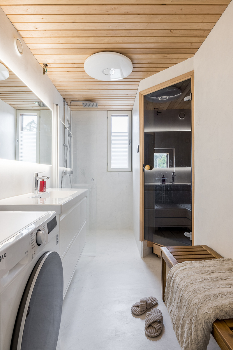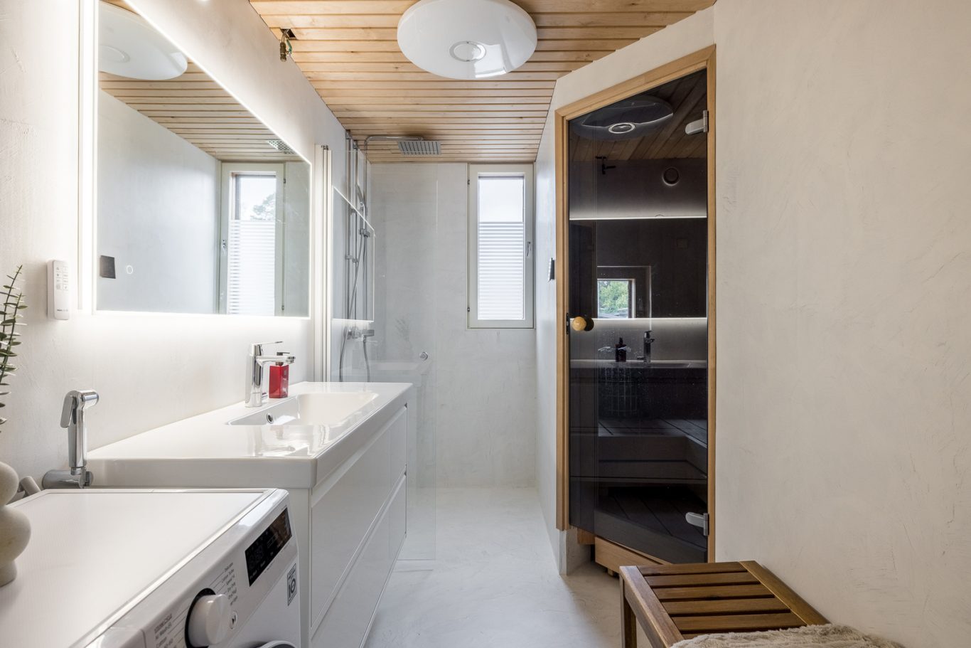 Tilava ja hyvin suunniteltu pohjaratkaisu tarjoaa avarat oleskelutilat, ikkunat kolmeen eri ilmansuuntaan ja runsaasti luonnonvaloa. Iso lasitettu parveke avautuu kauniin ja vehreän sisäpihan suuntaan – täydellinen paikka aamukahville tai illanviettoon. Oman kodin kruunaa ikkunallinen sauna, jossa voit rentoutua päivän päätteeksi.