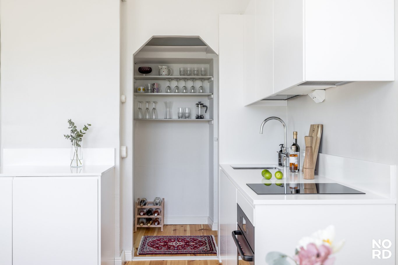 Huoneisto on hiljattain remontoitu vanhaa kunnioittaen – alkuperäiset yksityiskohdat, kuten kauniit ovet, ikkunalaudat ja huonekorkeus, on säilytetty osaksi kodin persoonallista ilmettä. Remontissa on panostettu harmoniseen värimaailmaan ja laadukkaisiin materiaaleihin, kuten saumattomasti talon henkeen yhteensopivaan puulattiaan.