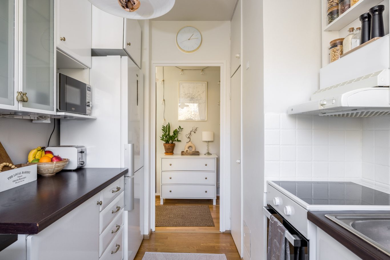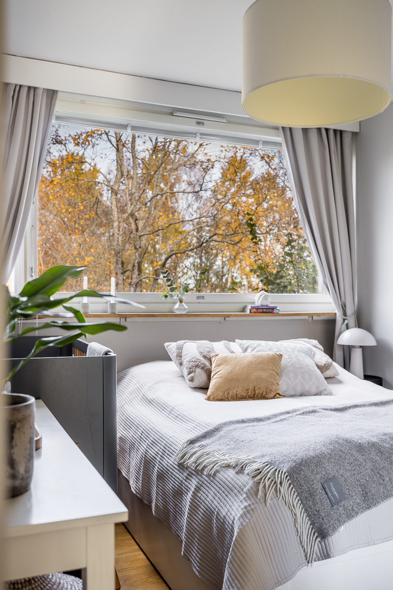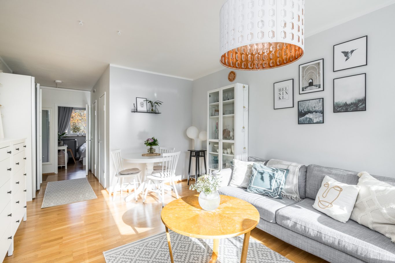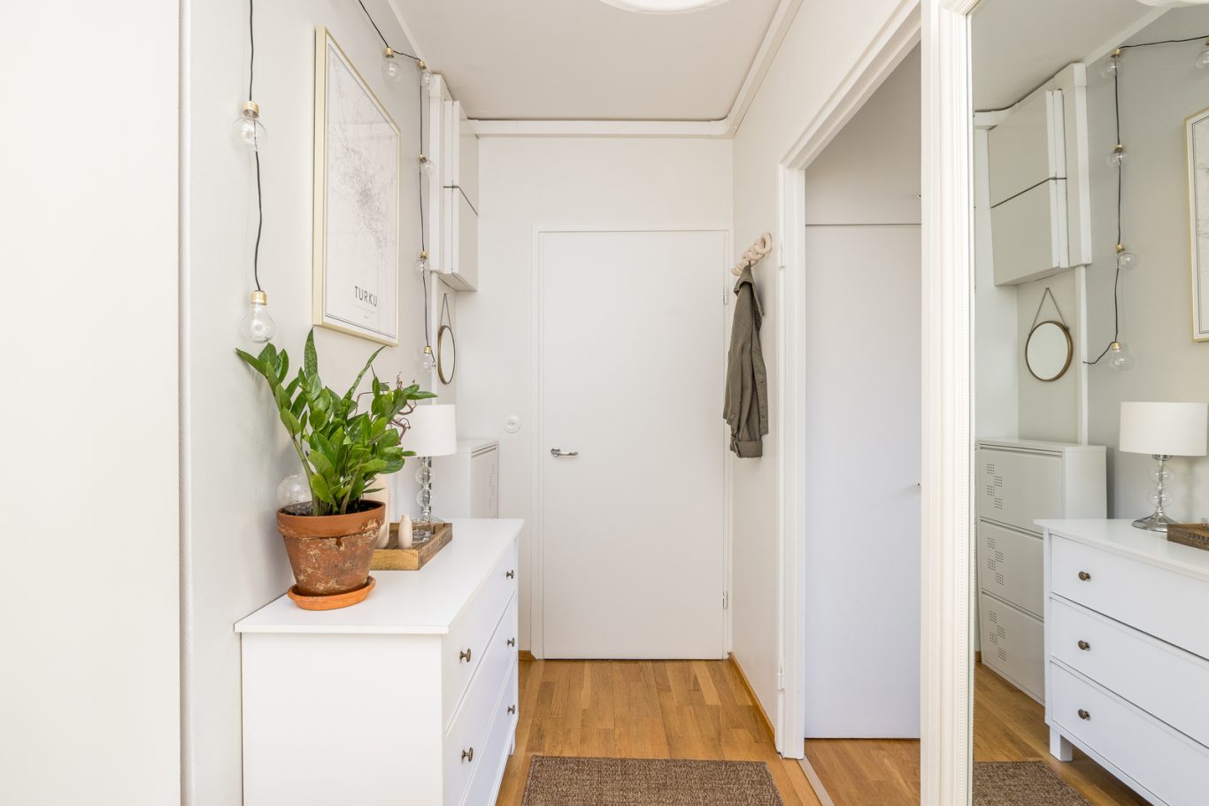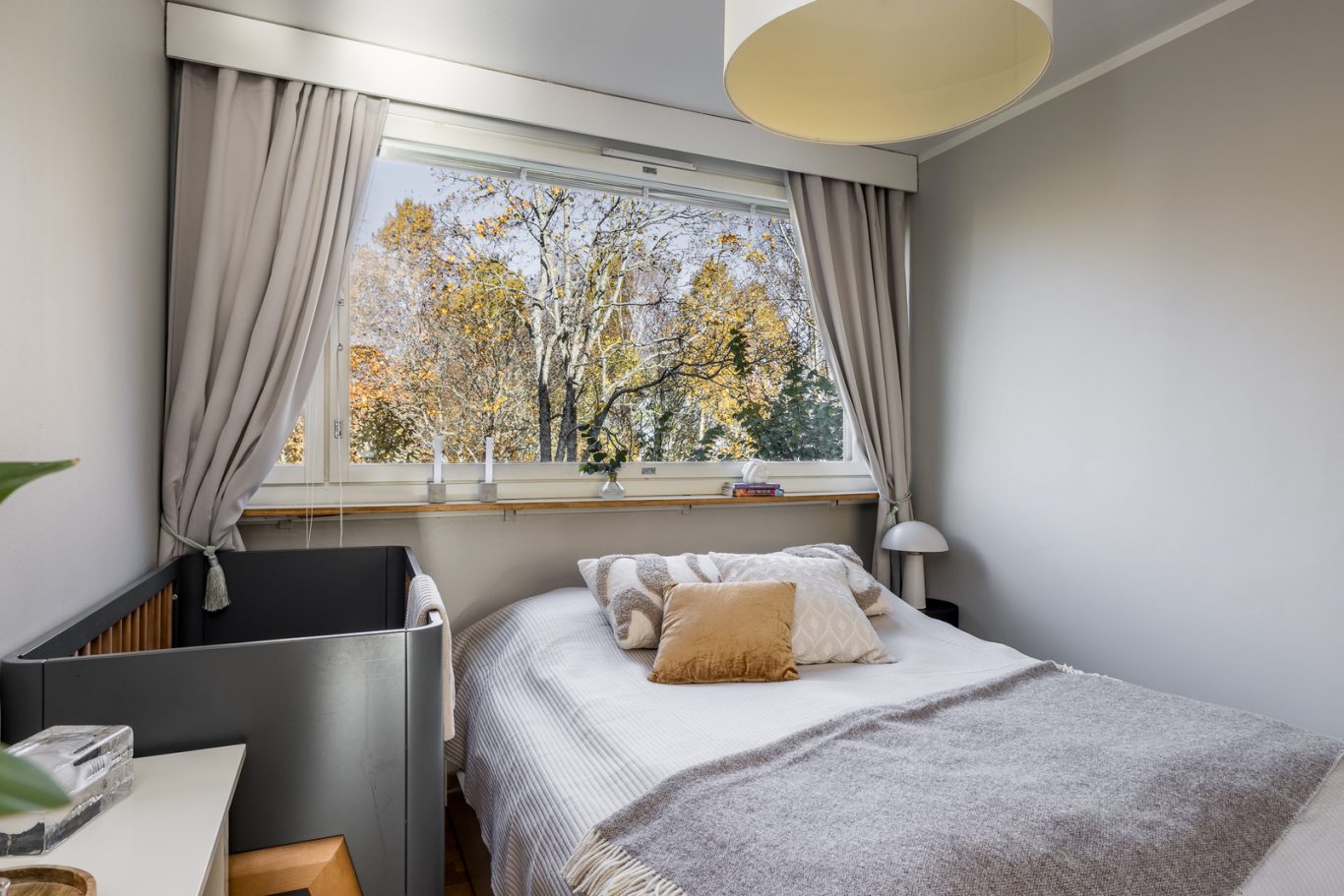 Tämä kaunis ja hyvin suunniteltu koti hurmaa valoisuudellaan, vehreillä näkymillä ja optimaalisella pohjaratkaisullaan. Olohuone on tilava, keittiö hyvin varusteltu ja kylpyhuoneessa on paikka pesukoneelle, kun taas vaatehuoneen ja kaapistojen ansiosta säilytystilaa on runsaasti. Lasitettu parveke toimii viihtyisänä lisähuoneena aikaisesta keväästä pitkälle syksyyn ja on täydellinen paikka aamukahville tai illan rentoutumishetkiin.