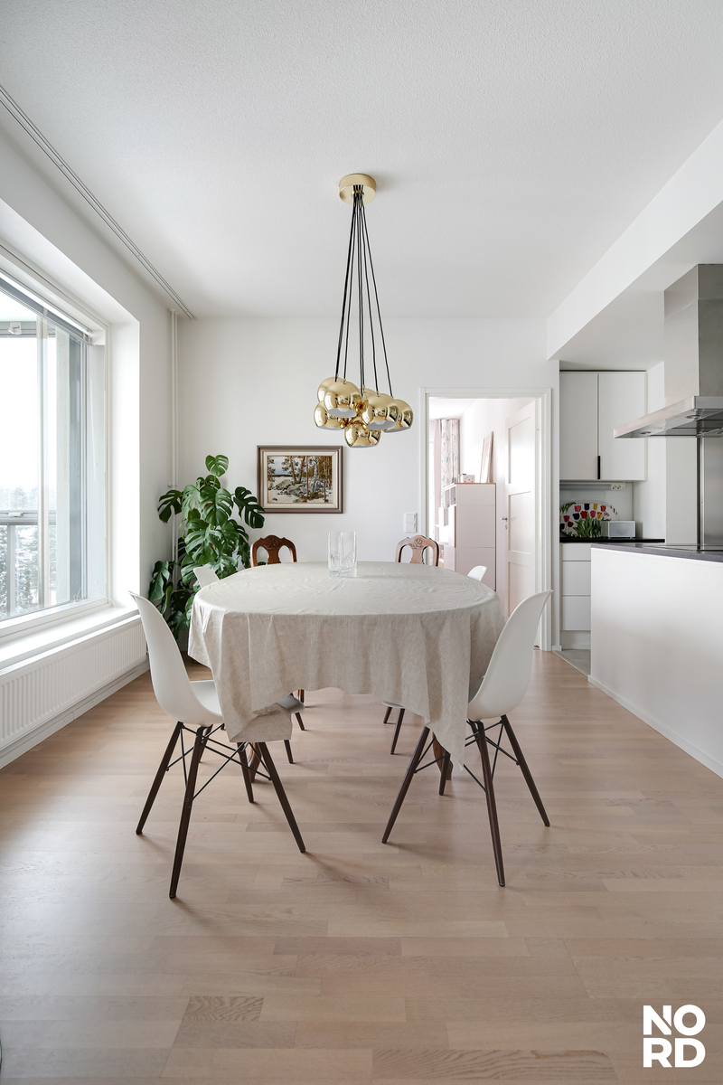 Tämä kodikas asunto sopii pitkäaikaiseen asumiseen. Ahtauden tunnetta ei tässä asunnossa ole, vaan asunnon kaikki tilat ovat miellyttävän väljät ja onnistuneesti suunniteltuja arkielämän tarpeisiin tyylistä tinkimättä. Luonnonvaloa isoista ikkunoista ympärivuotisesti. Asuntoa on pidetty huolellisesti ja siististi.