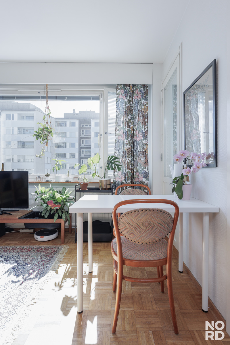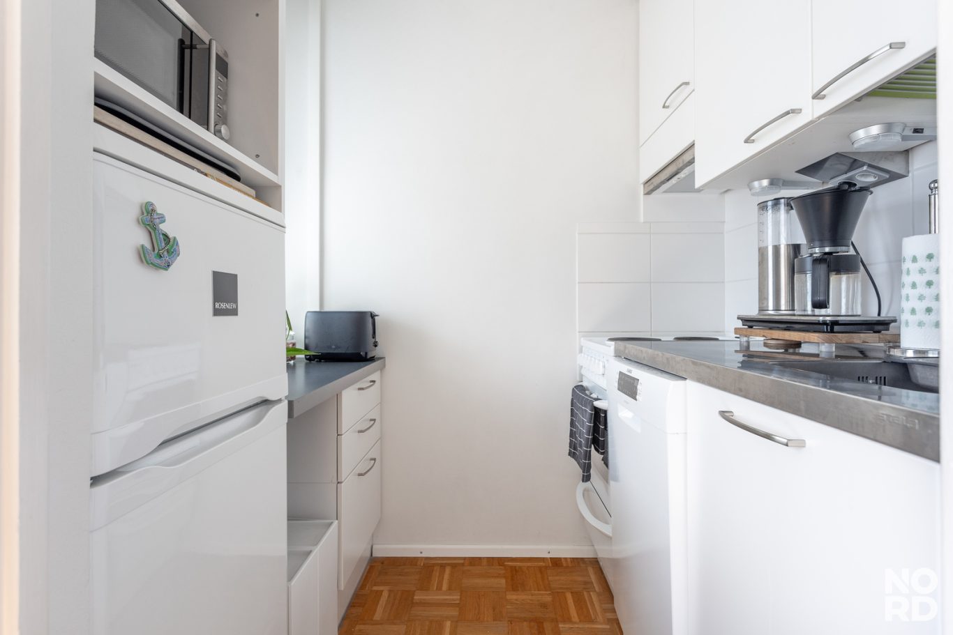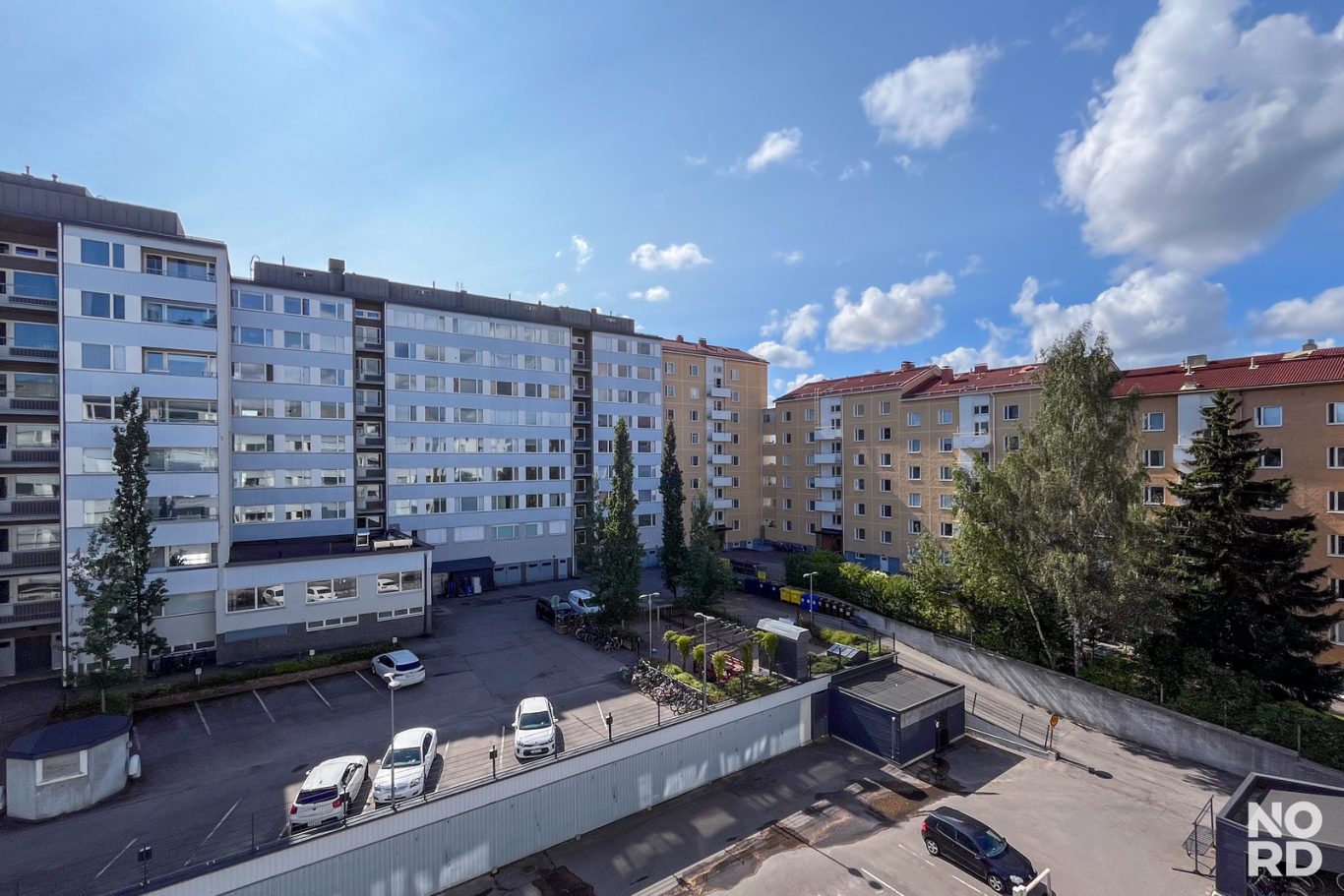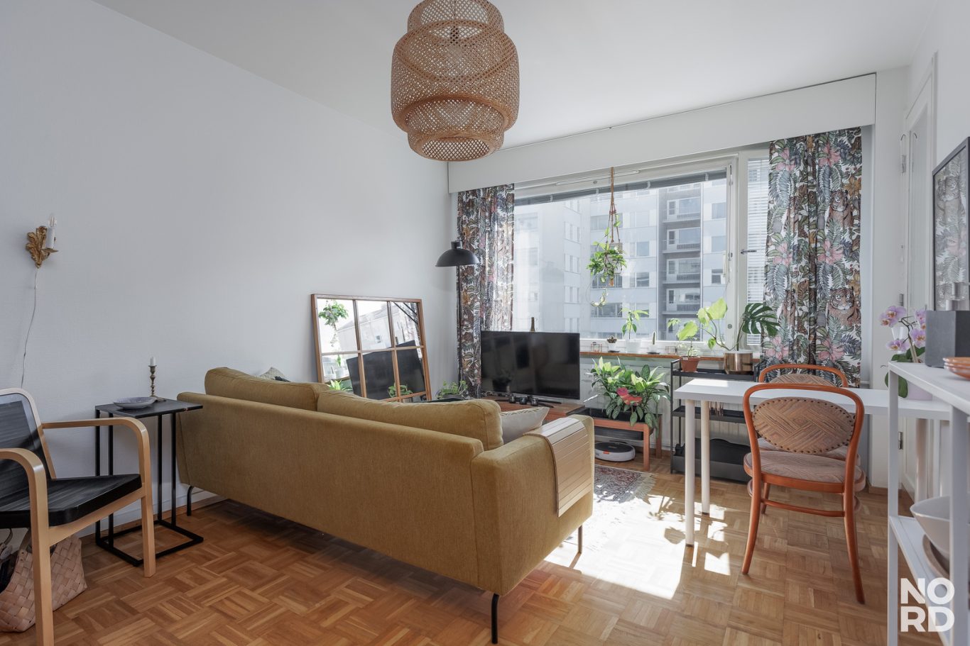 Kodin keskipiste on ilmava ja valoisa olohuone, jossa on reilusti ikkunapinta-alaa sekä tilaa viihtymiseen. Olohuoneesta on myös käynti parvekkeelle, josta aukeaa hienot kaupunkinäkymät sisäpihan suuntaan. Vaaleansävyiseen uudistettuun keittiöön tulee hyvin luonnonvaloa ja sen edustalle mahtuu hyvin ruokapöytä. Eteisessä on säilytystilaa, kaksi seinäkaappia katosta lattiaan. Kokonaisuuden kruunaa mukavankokoinen kylpyhuone, joka remontoitu täydellisesti putkiremontin yhteydessä 2014-2016.