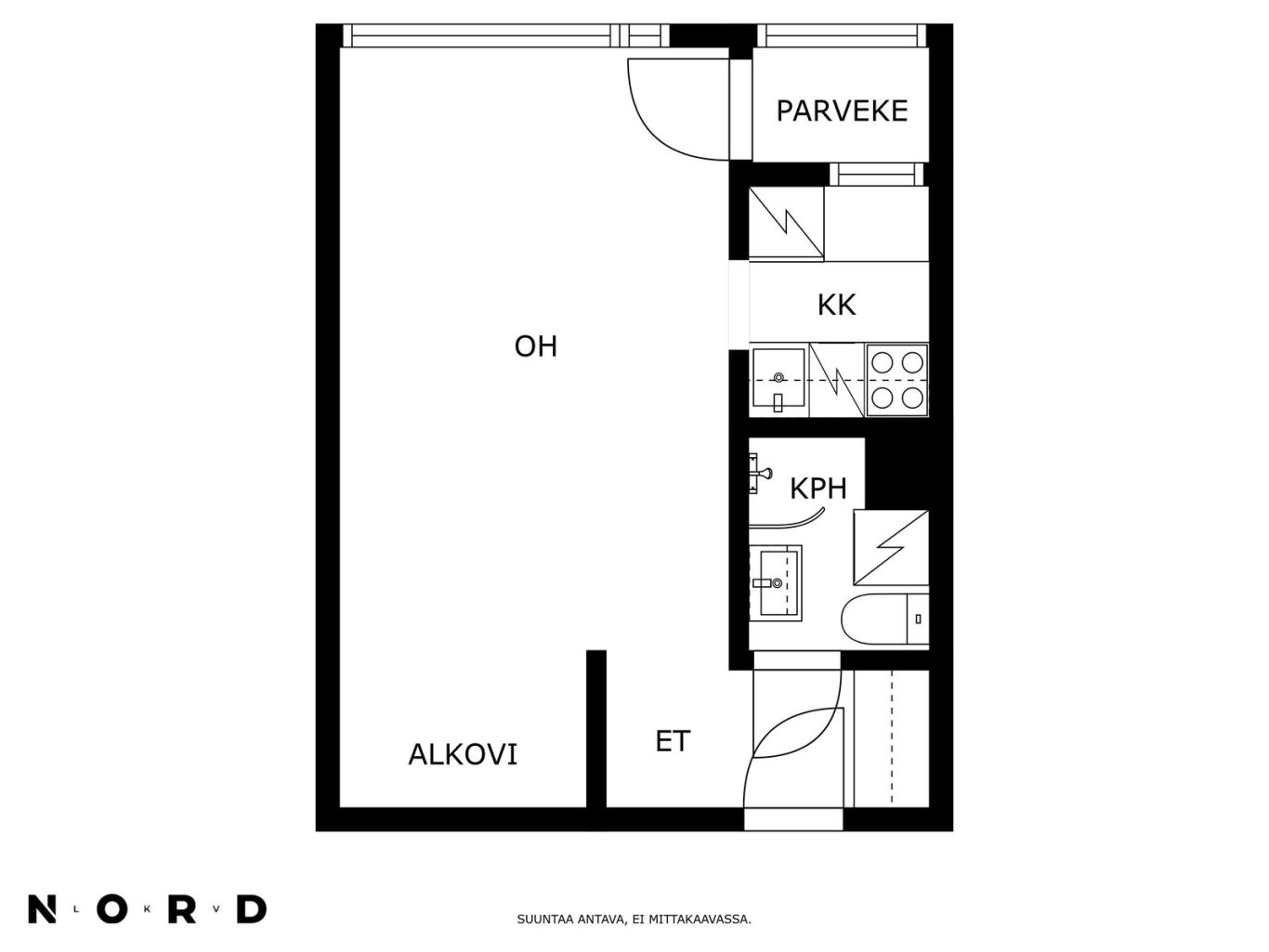 | Huoneistoselitelmä | 1h+k+alk+kph (yhtiöjärjestyksen mukaan 1 h+kk+kph+parv.) |