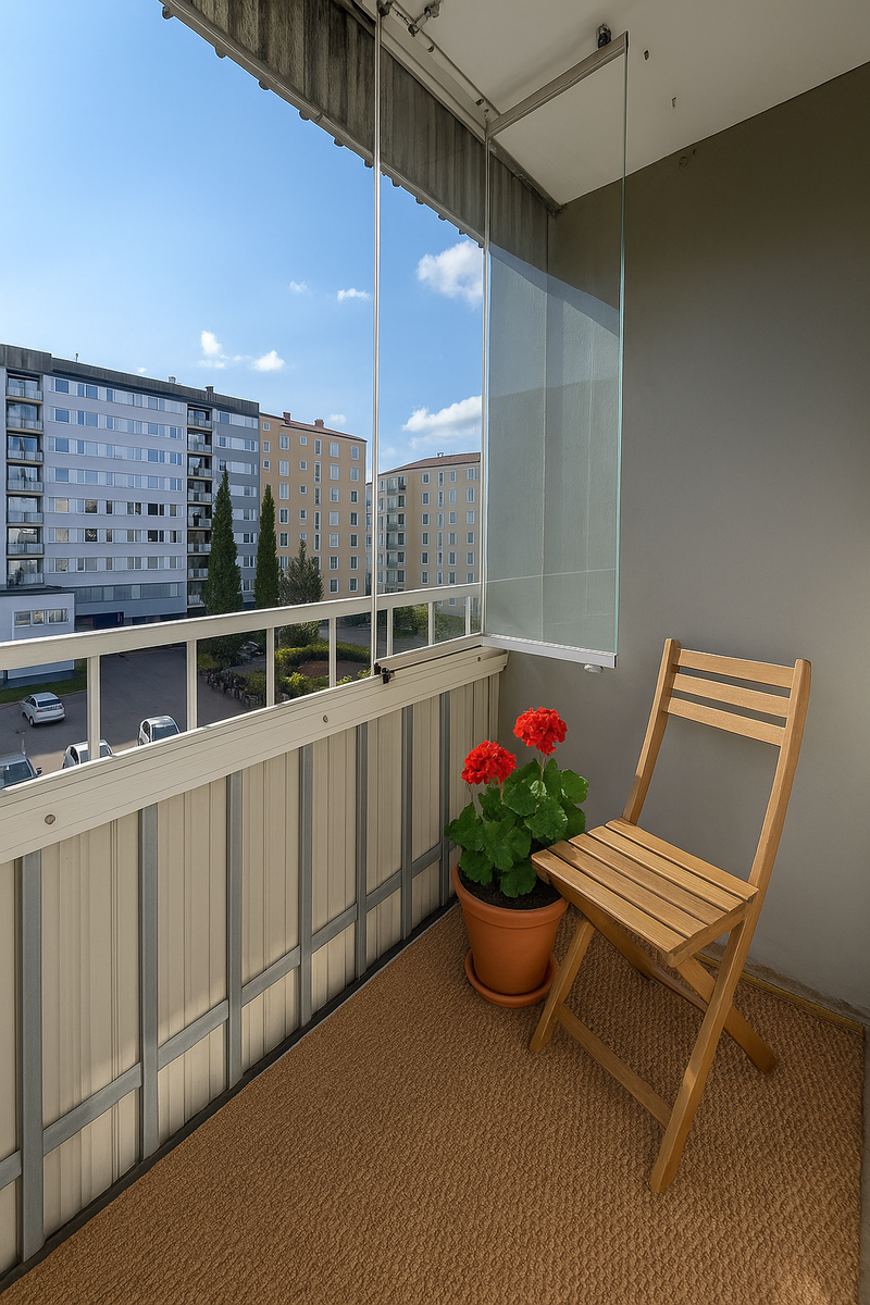 | Tehdyt korjaukset | Keittiö uusittu putkiremontin yhteydessä lisätyönä. Parvekelasitus. |
