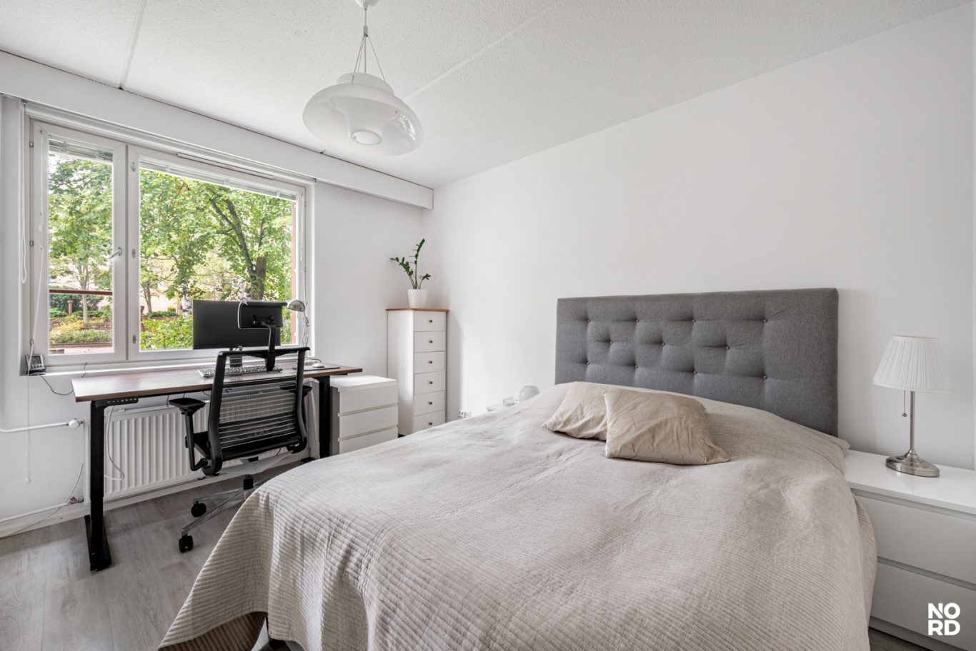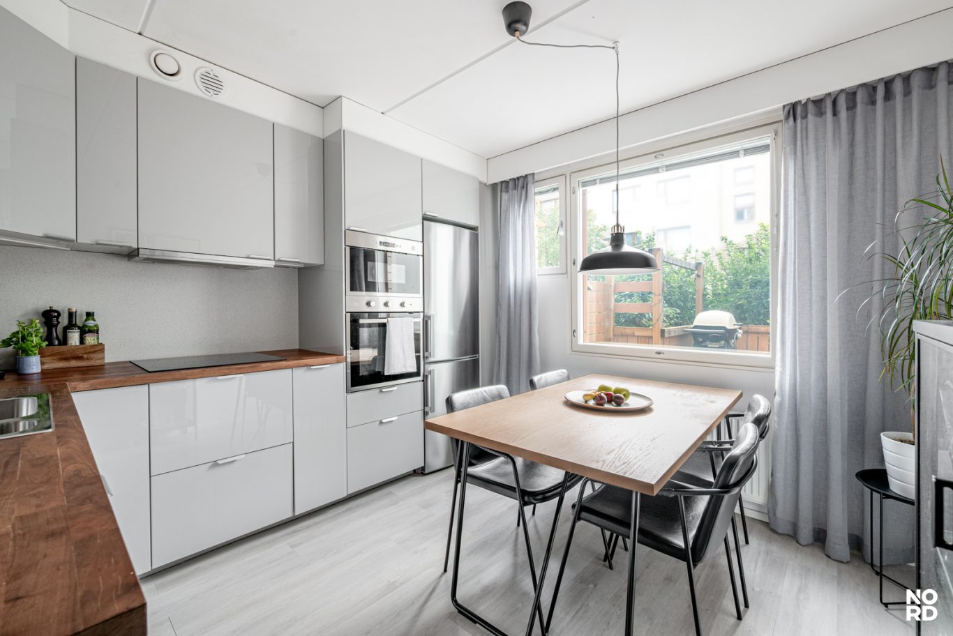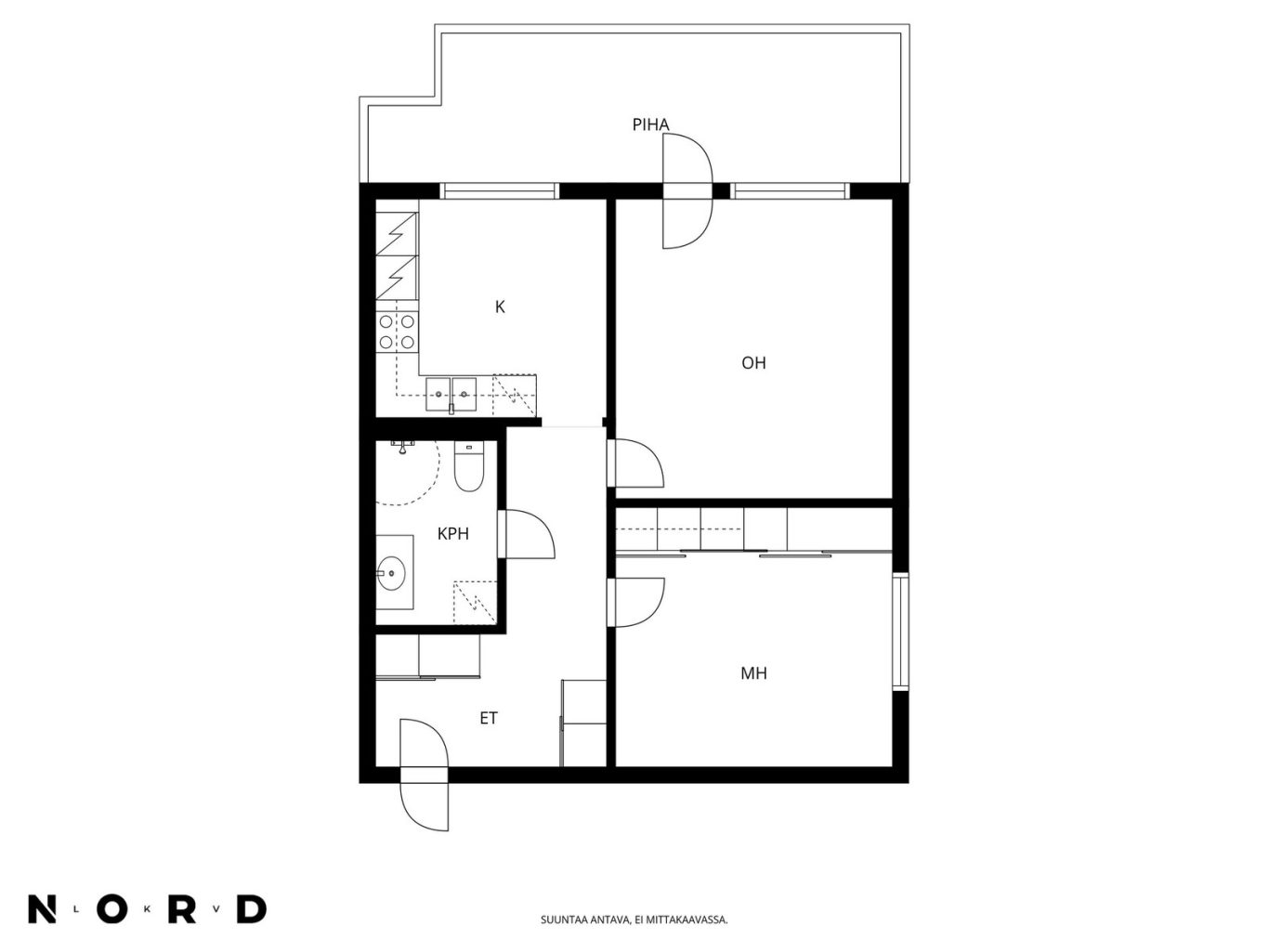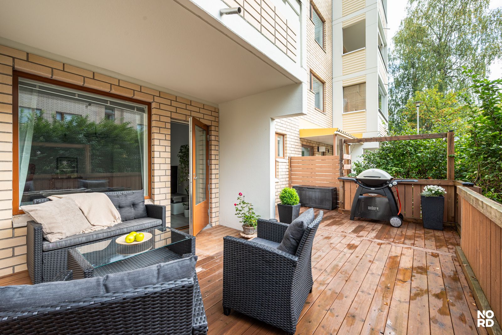 Moderni vaalea keittiö, jossa hyvin kaappi- ja laskutilaa, ja keittiön yhteyteen mahtuu hyvin ruokapöytä ikkunan ääreen. Avara olohuone, josta käynti aidatulle suojaisalle terassipihalle. Täällä on mukava keväästä syksyyn grillata sekä nautiskella auringosta. Makuuhuoneeseen mahtuu parisänky, ja lisäksi vaikkapa työpiste. Tilava kylpyhuone. Eteinen, jossa reilusti kaappitilaa. Asunto on todella siisti ja nätisti pidetty.