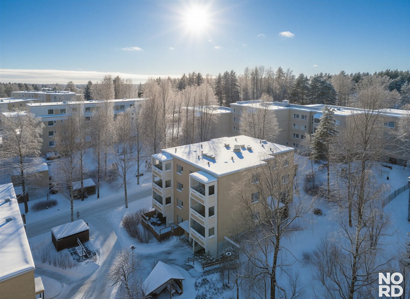 | Taloyhtiössä muuta | Irtaimistovarastot, saunaosasto (2 kpl), pesutupa, talokohtaiset kuivaushuoneet, porraskohtaiset pyörävarastot, kerhotila, väestönsuoja, tekninen tila. Kaapeli-tv ja DNA laajakaista. Yhtiön hallussa toimistostotila 1 (73 m²) ja toimistotila 2 (27 m²). Osakkaiden kunnossapitovastuu kts. yj:n 18 §. Huoneistoihin tehdään yhtiön päätöksellä myyntiä varten kosteuskartoitus, raportti on liitettävä kauppakirjoihin. |