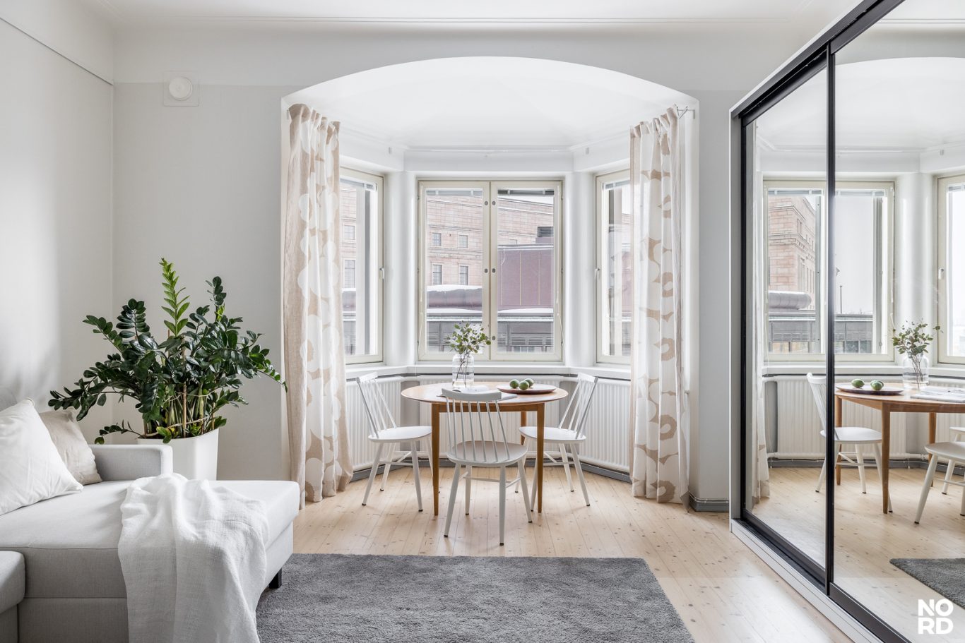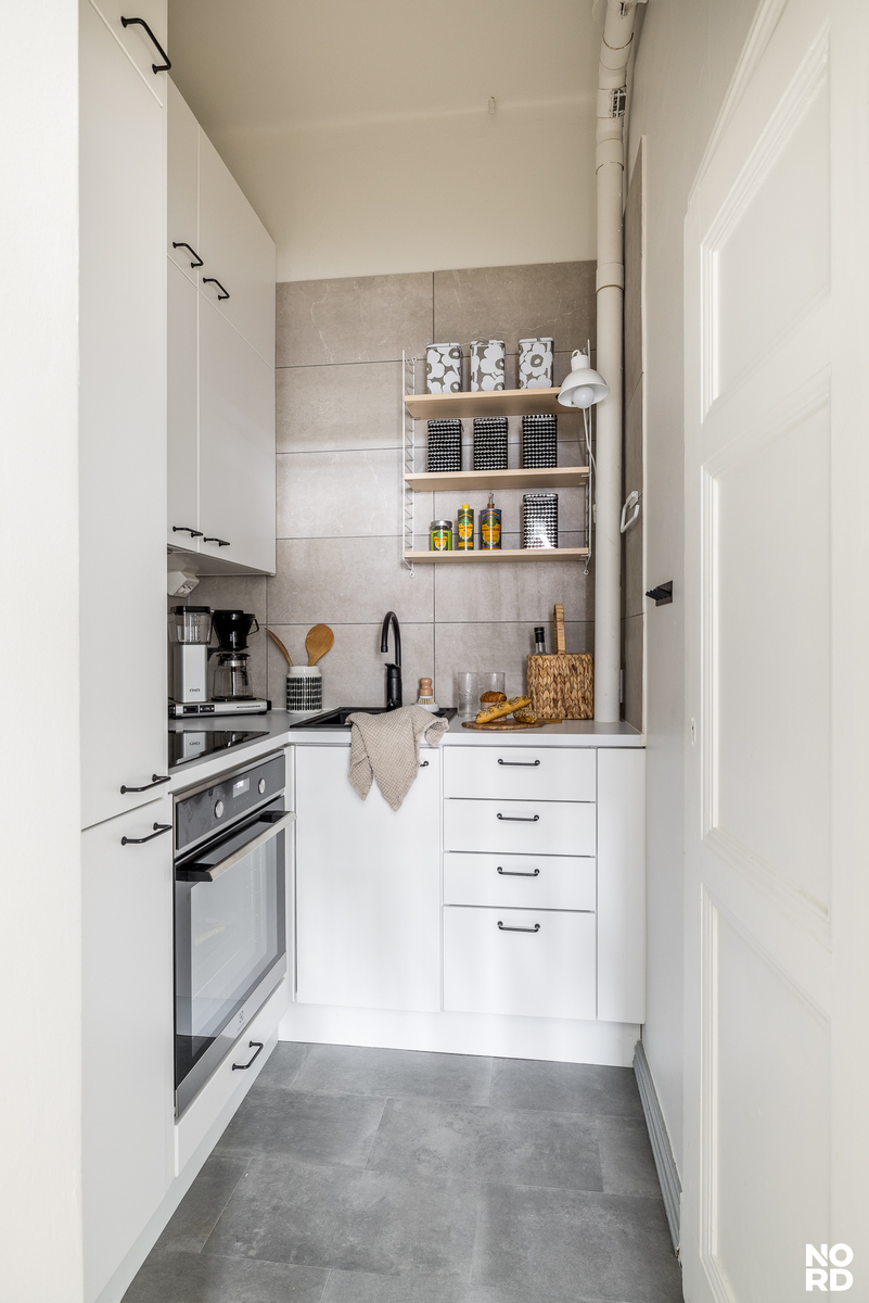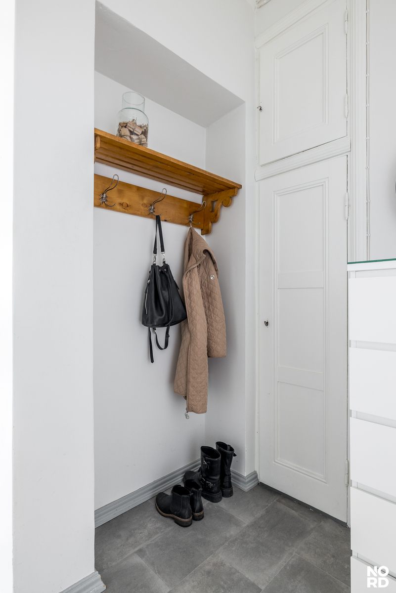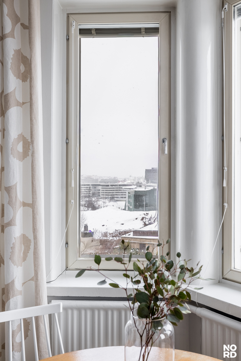 Korkea huonekorkeus, leveät ikkunalaudat, olohuoneen moniosainen erkkeri-ikkuna, kakluuni ja aito lautalattia, siitä on korttelin jugend-tunnelma tehty. Kuitenkin tämän nyt myytävänä olevan tilavan kaksion keittiö ja kylpyhuone on tyylikkäästi remontoitu vasta muutama vuosi sitten ja kodin muutkin pinnat ovat hyväkuntoiset. Ikkunoista on hieno viidennen kerroksen näkymä kadulle eduskunnan ja Musiikkitalon suuntaan.
