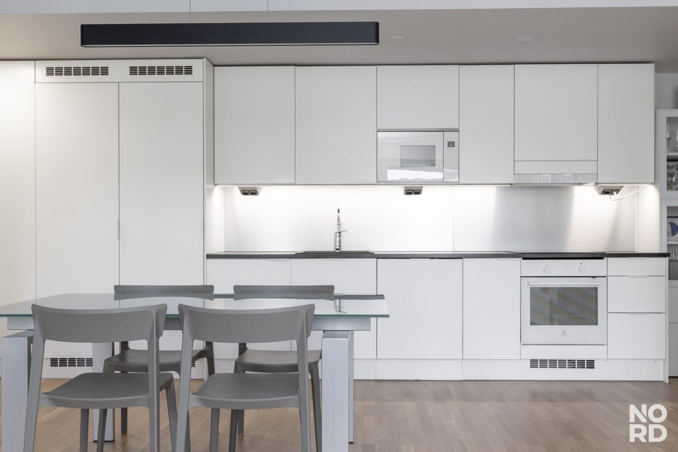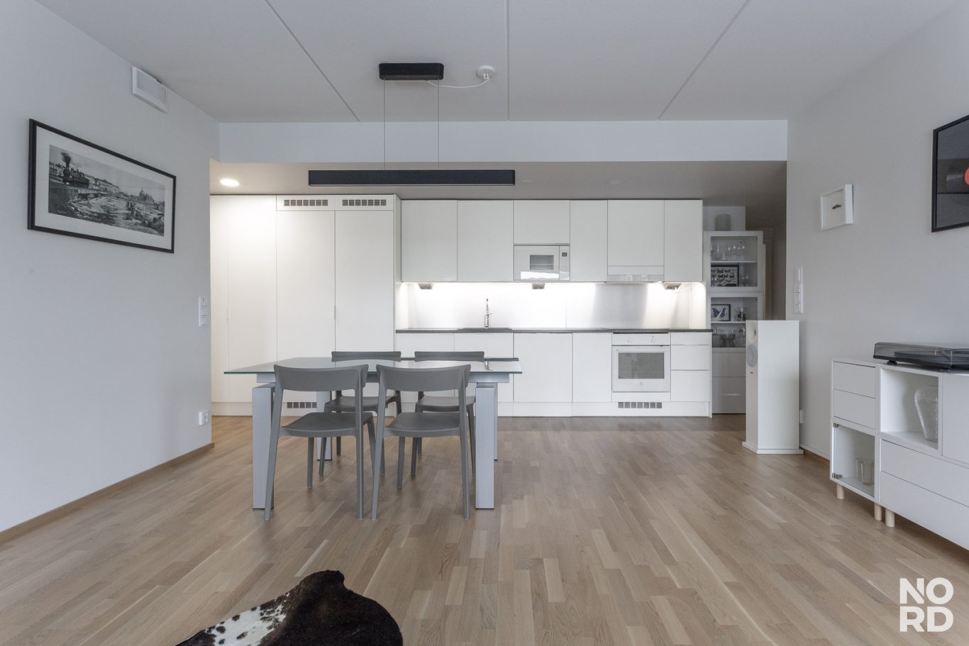 Kodin keskipiste on avara olohuoneen ja keittiön yhdistelmä. Tilaa on oikeasti, tänne mahtuvat niin kunnon ruokapöytä kuin iso sohvaryhmä ilman ahtautta. Tämä on tila, jossa arki rullaa ja vieraat viihtyvät.