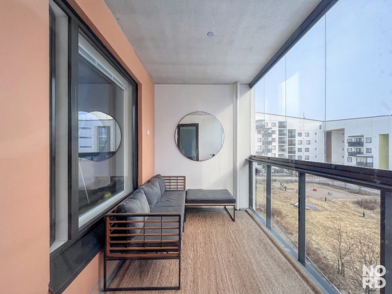 Etelään avautuva lasitettu parveke