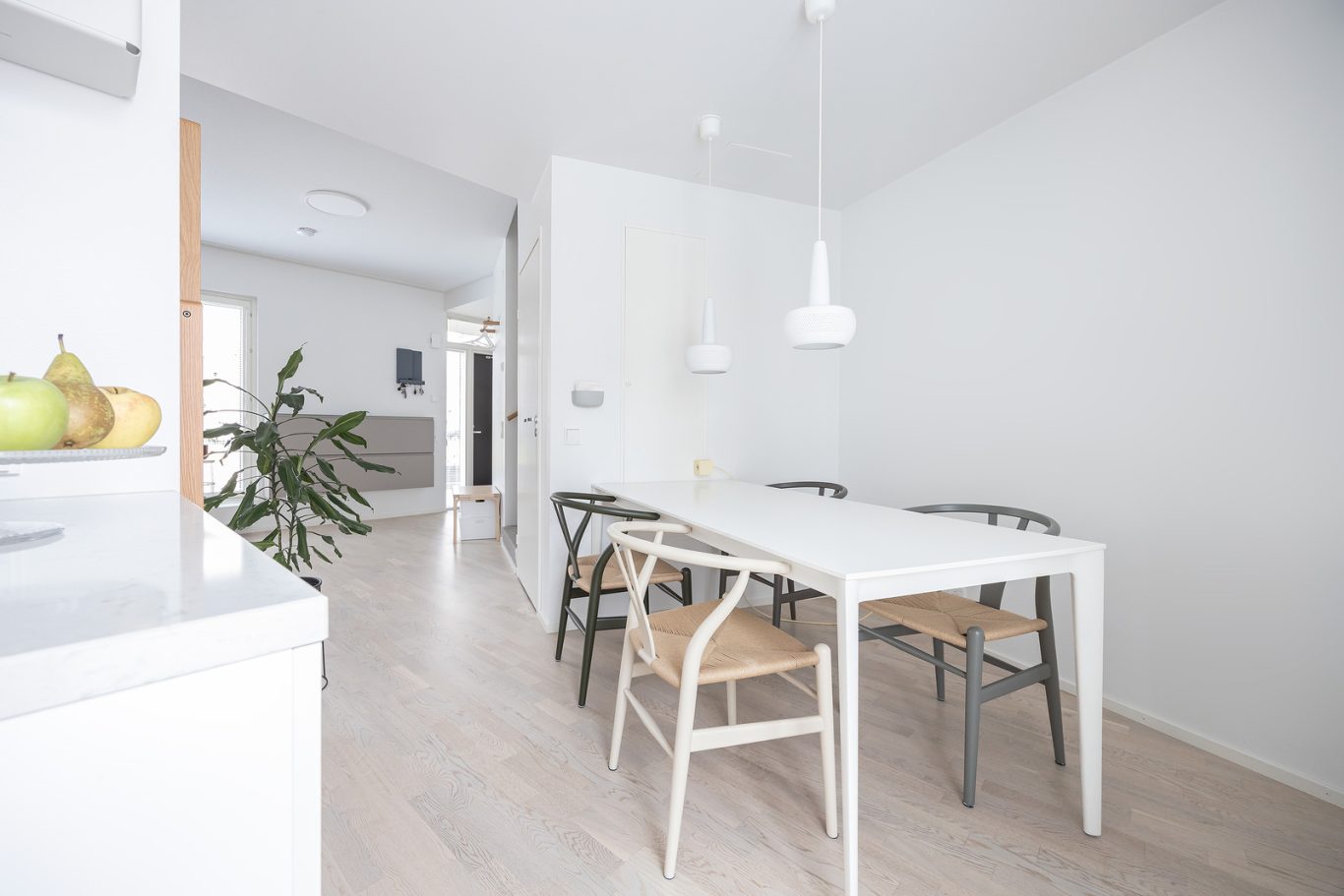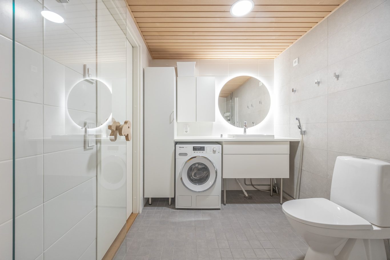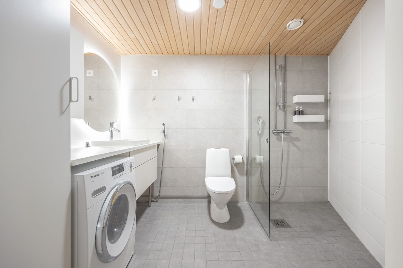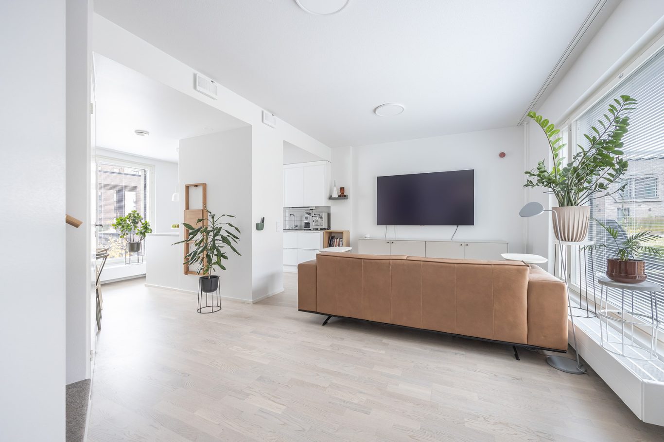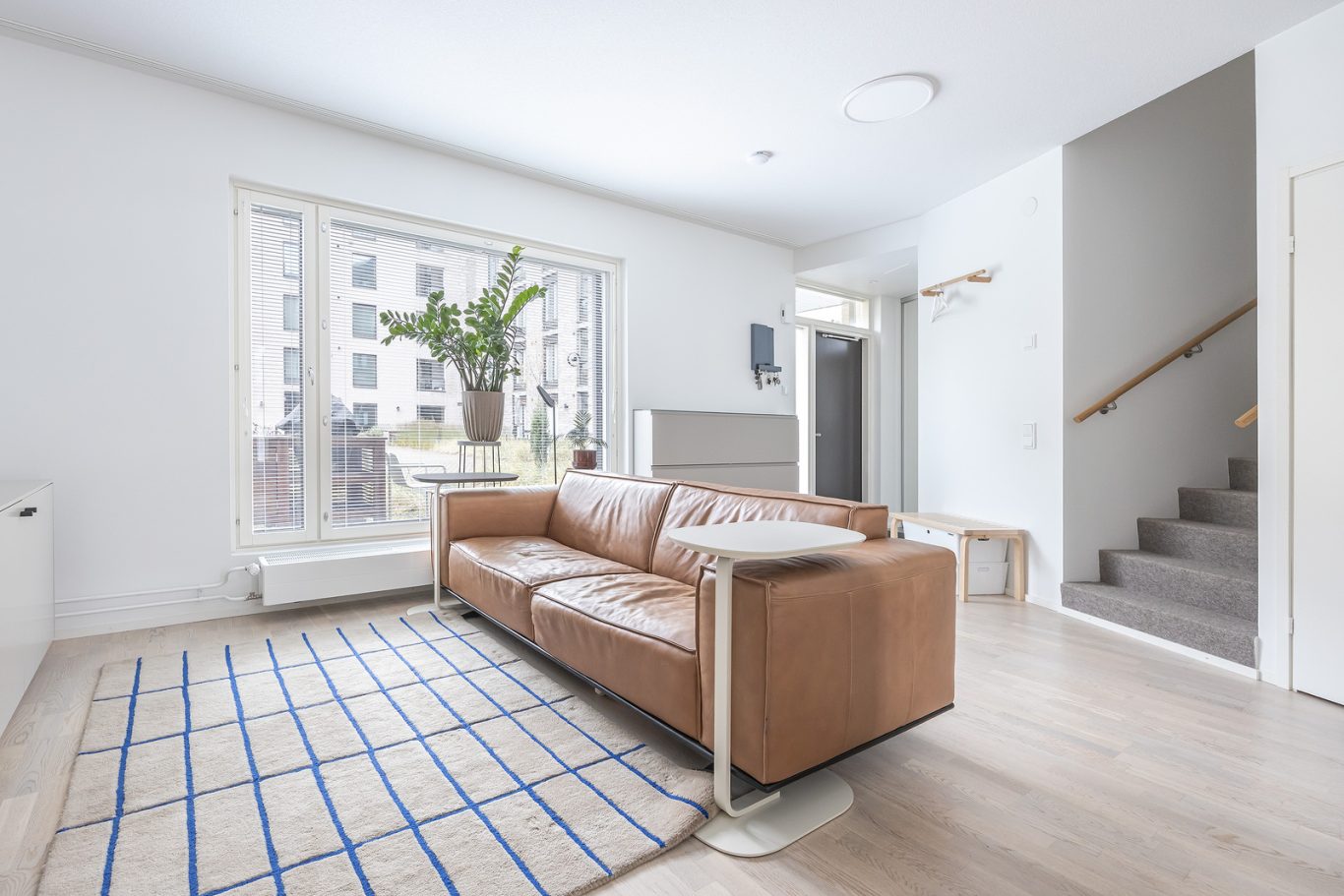 Laadukkaalla materiaaleilla ja valinnoilla varustettu koti! Asunnon sisääntulokerroksessa hyvänkokoinen olohuone, erillinen wc, Novartin keittiö Siemensin laadukkailla kodinkoneilla sekä ylämaan graniitti-työtasolla. Toisessa kerroksessa molemmat makuuhuoneet eri puolilla asuntoa sekä kylpyhuone, jossa hyvät kodinhoitotilat ja oma sauna aina valmiilla Harvian Forte kiukaalla. Säilytystilaa löytyy asunnon kaapistoista, vaatehuoneesta sekä huoneistokohtaisesta irtaimistovarastosta.