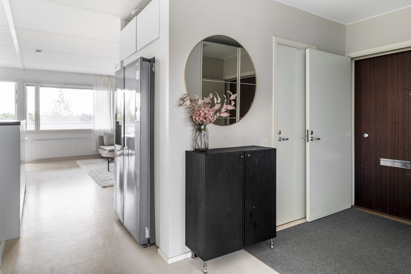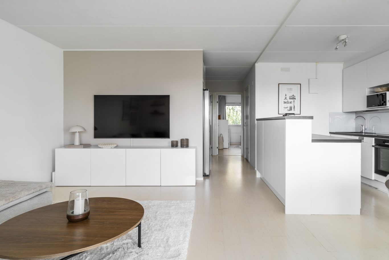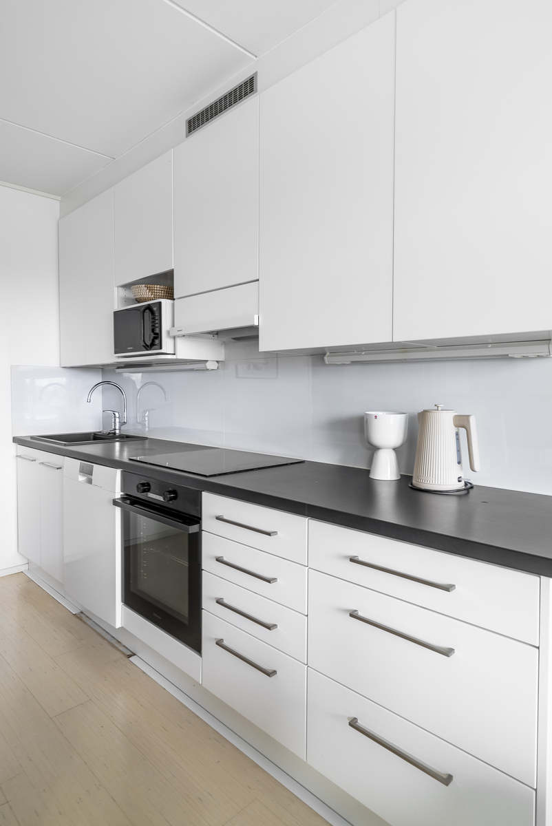 Asunnossa on käytännöllinen pohjaratkaisu: kaksi tilavaa makuuhuonetta, moderni ja tyylikäs keittiö sekä viihtyisä olohuone. Koko asunto on tyylikkäästi remontoitu laadukkailla materiaaleilla, ja vaaleat pinnat tuovat valoisuutta sekä avaruuden tuntua.