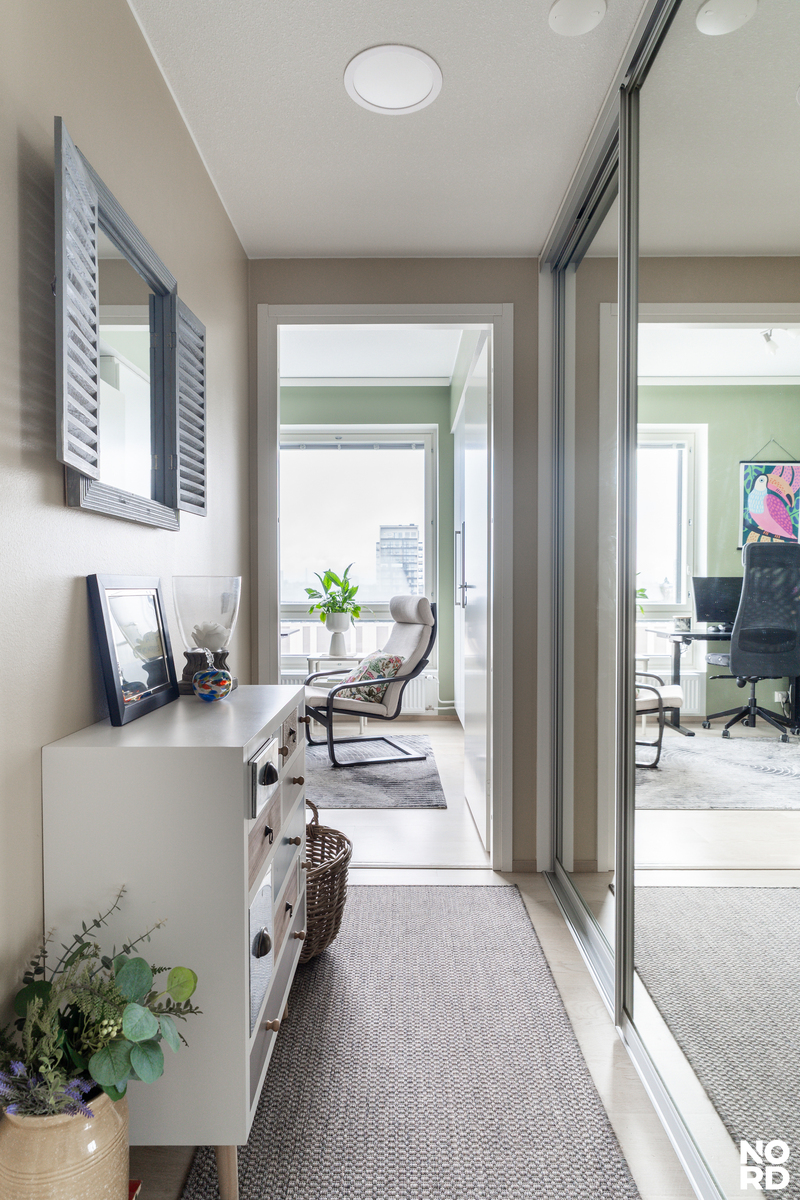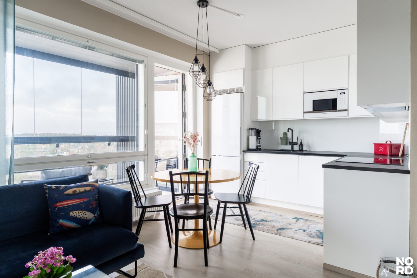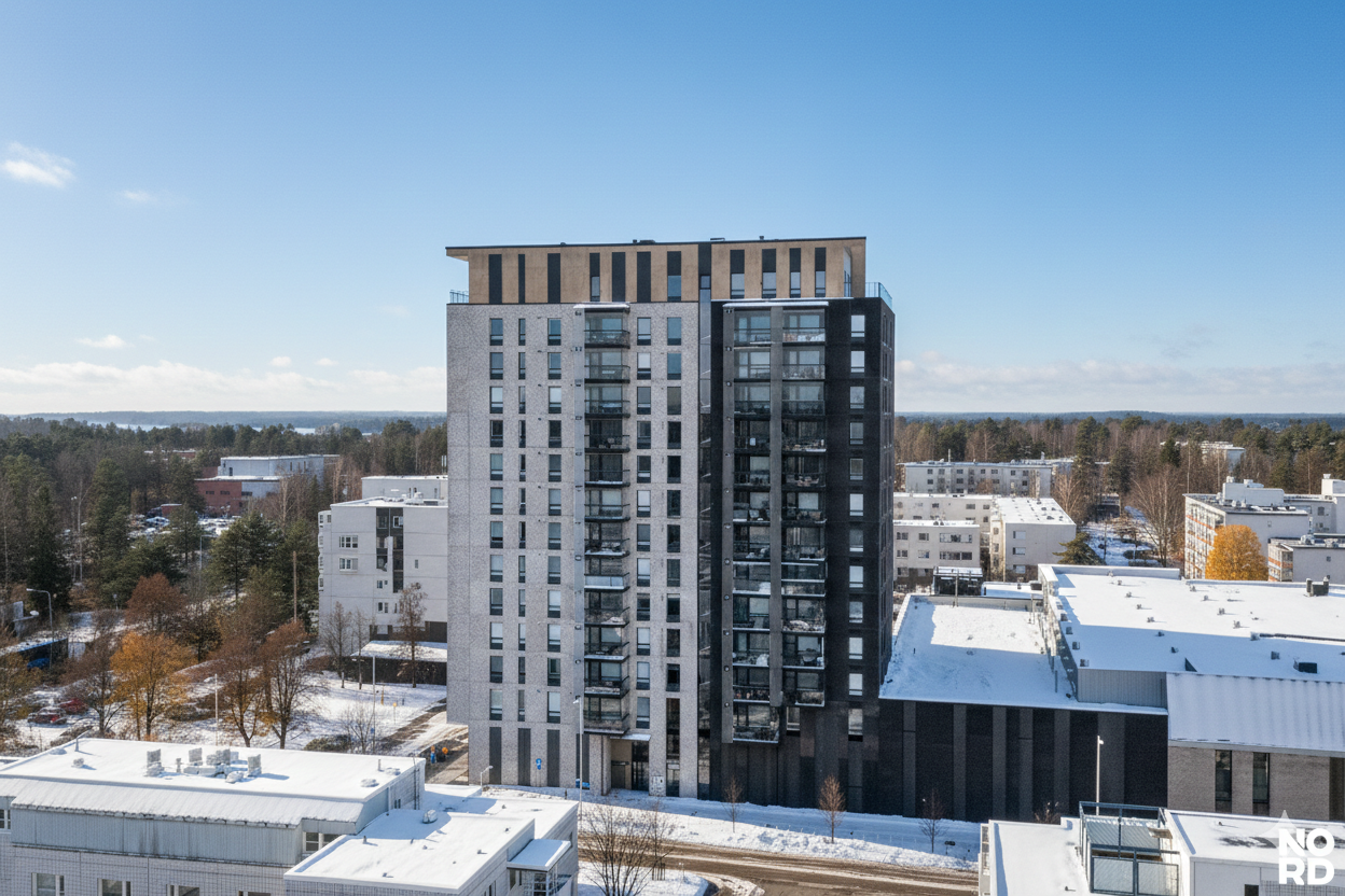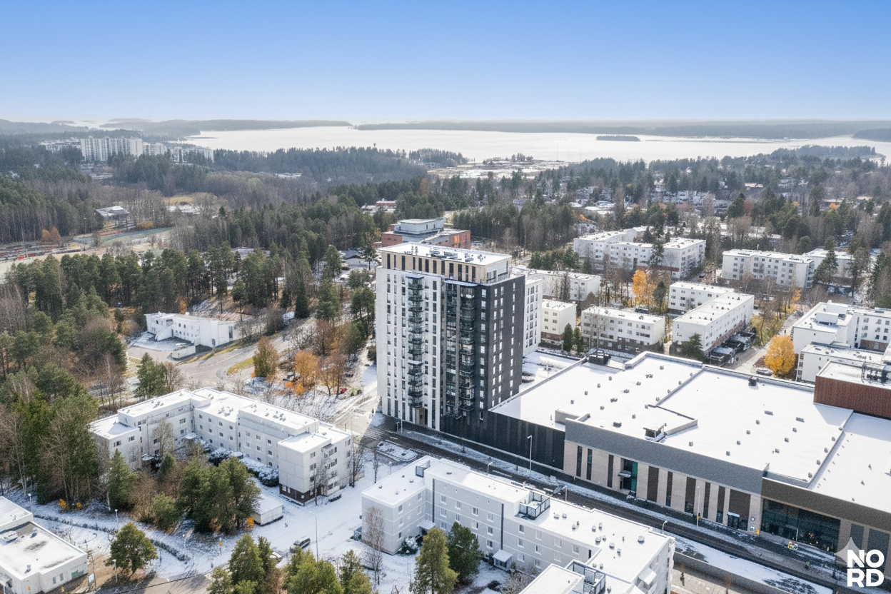 Tämä vuonna 2022 valmistunut talo on aivan kauppakeskus Lippulaivan vierestä! 8. kerroksesta aukeaa avarat näkymät aina Helsinkiin asti.