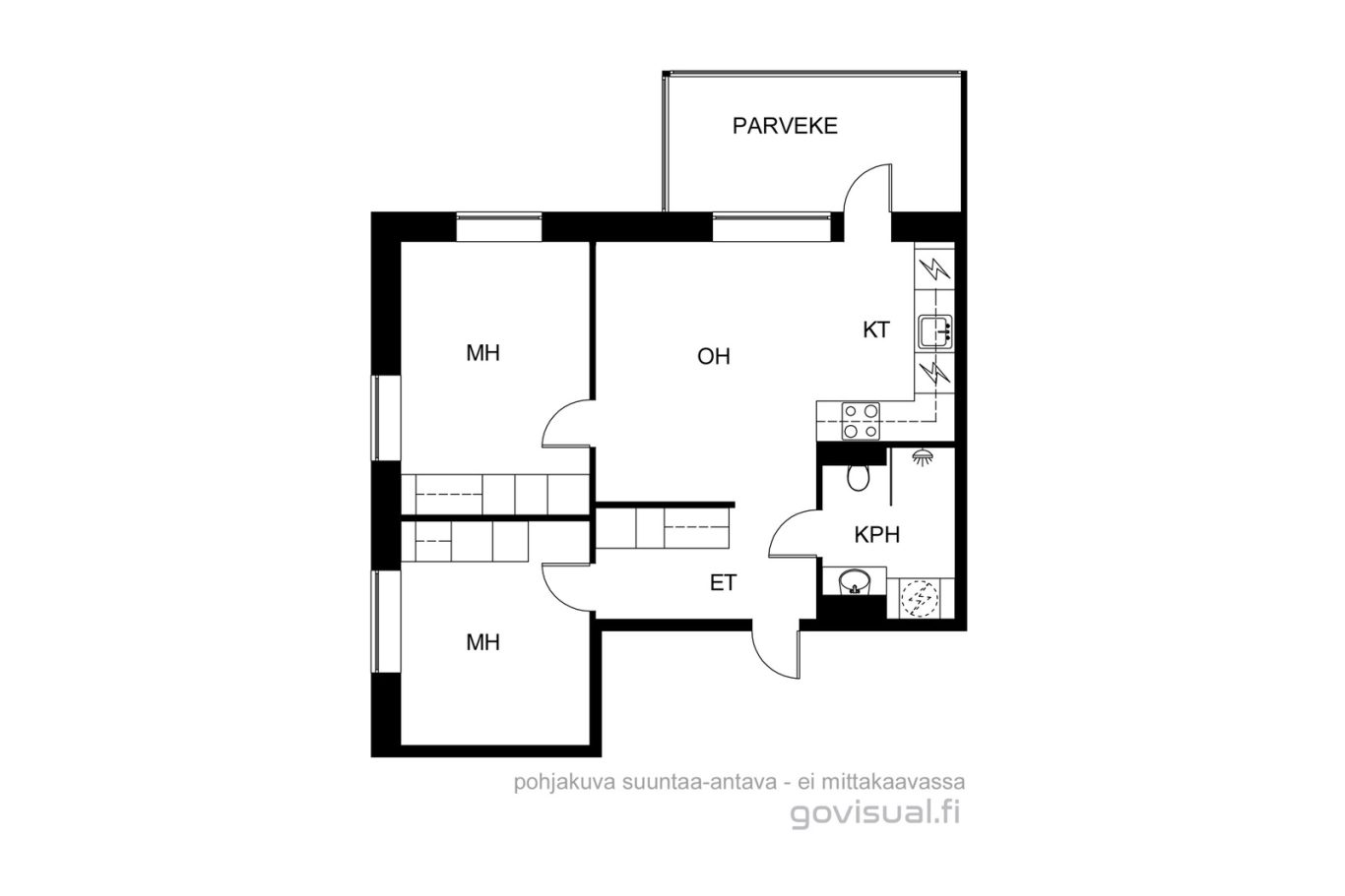 | Lisätietoja pinta-alasta | Pinta-ala ei ole tarkistusmitattu. Hinta ei ole pinta-alaperusteinen. Yhtiöjärjestyksen mukainen huoneistoselitelmä on 3H+KT. |