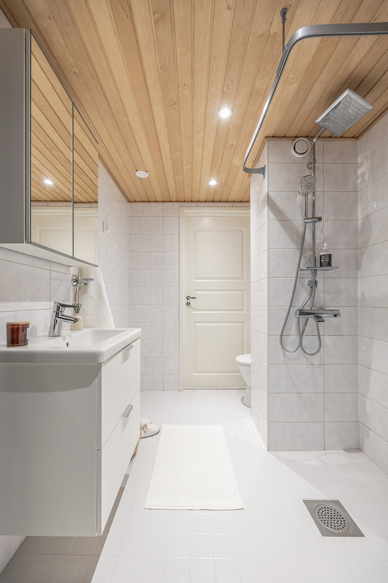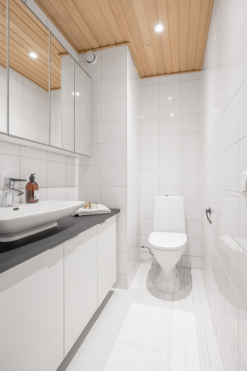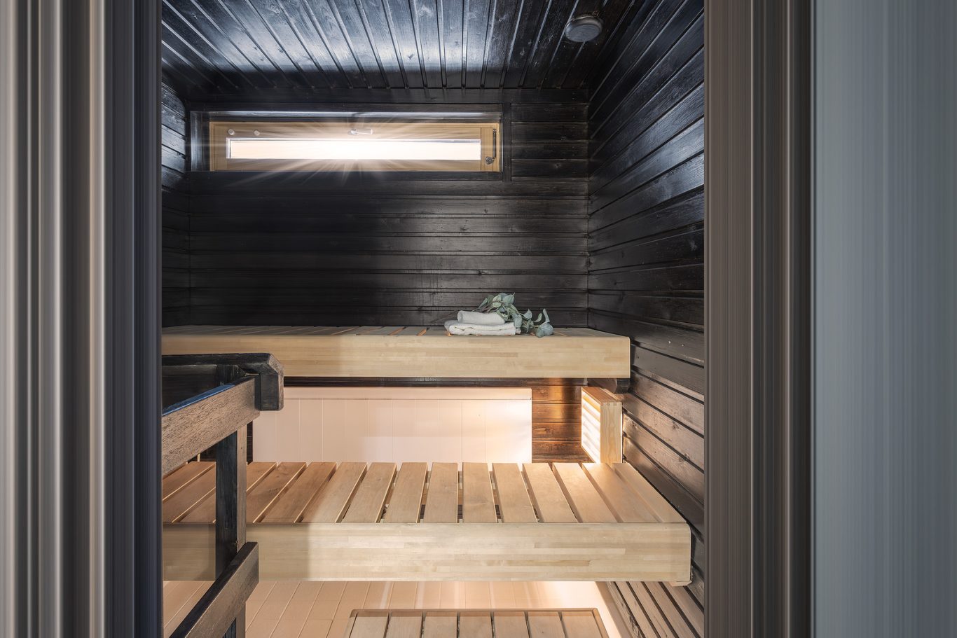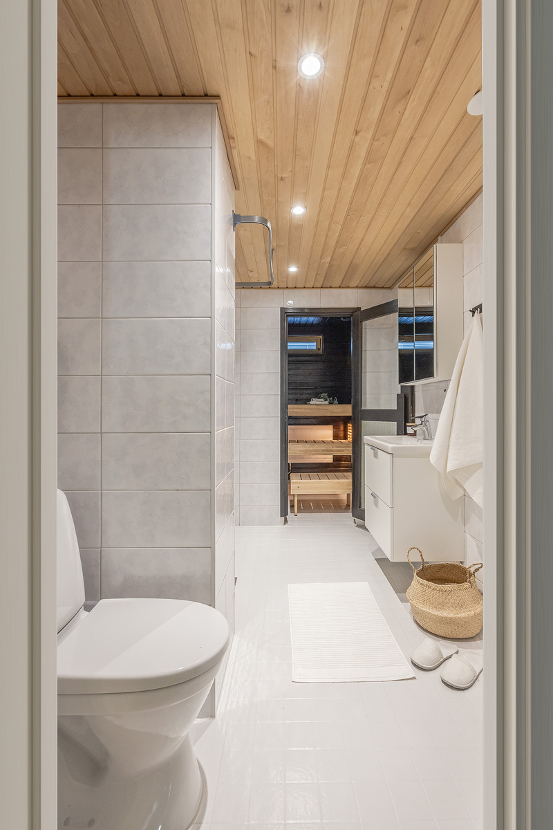 Oma sauna, kylpyhuoneen yhteydessä myös wc, lisäksi on toinen erillinen wc.