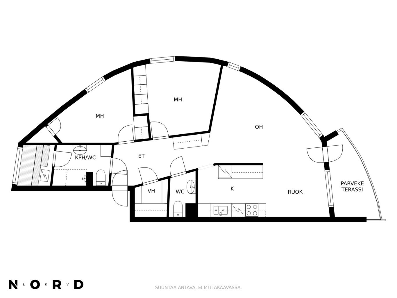 | Huoneistoselitelmä | 3h+avok+rt+kh/wc+s+wc+vh+parveke |