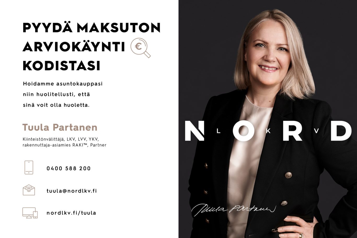 Tiedustelut ja esittelypyynnöt Tuula Partanen, 0400 588200, tuula@nordlkv.fi