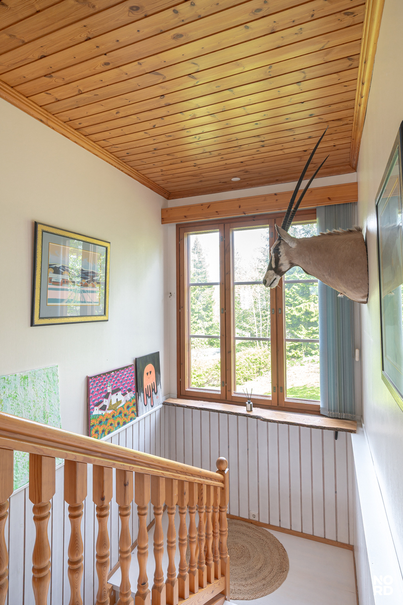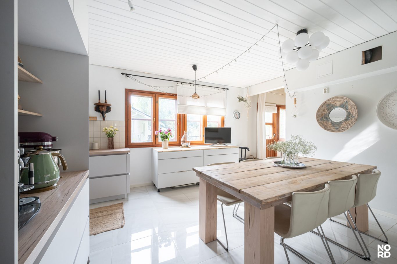 Monitasoinen hyvin suunniteltu tilaratkaisu luo oman erityspiirteensä tähän kauniiseen kotiin.