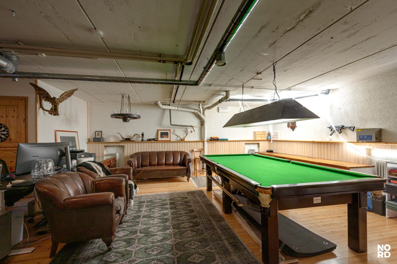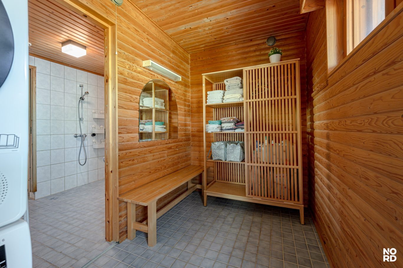 Sisääntulokerroksessa näyttävä olohuone mistä käynti parvekkeelle, uusittu nykyaikainen keittiö, kolme makuuhuonetta sekä wc. Alakerrassa takkahuone, biljardihuone, sauna kylpyhuone ja makuuhuone, alakerrasta käynti pihalle.