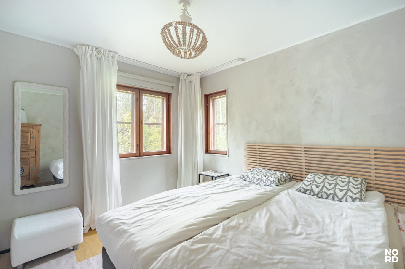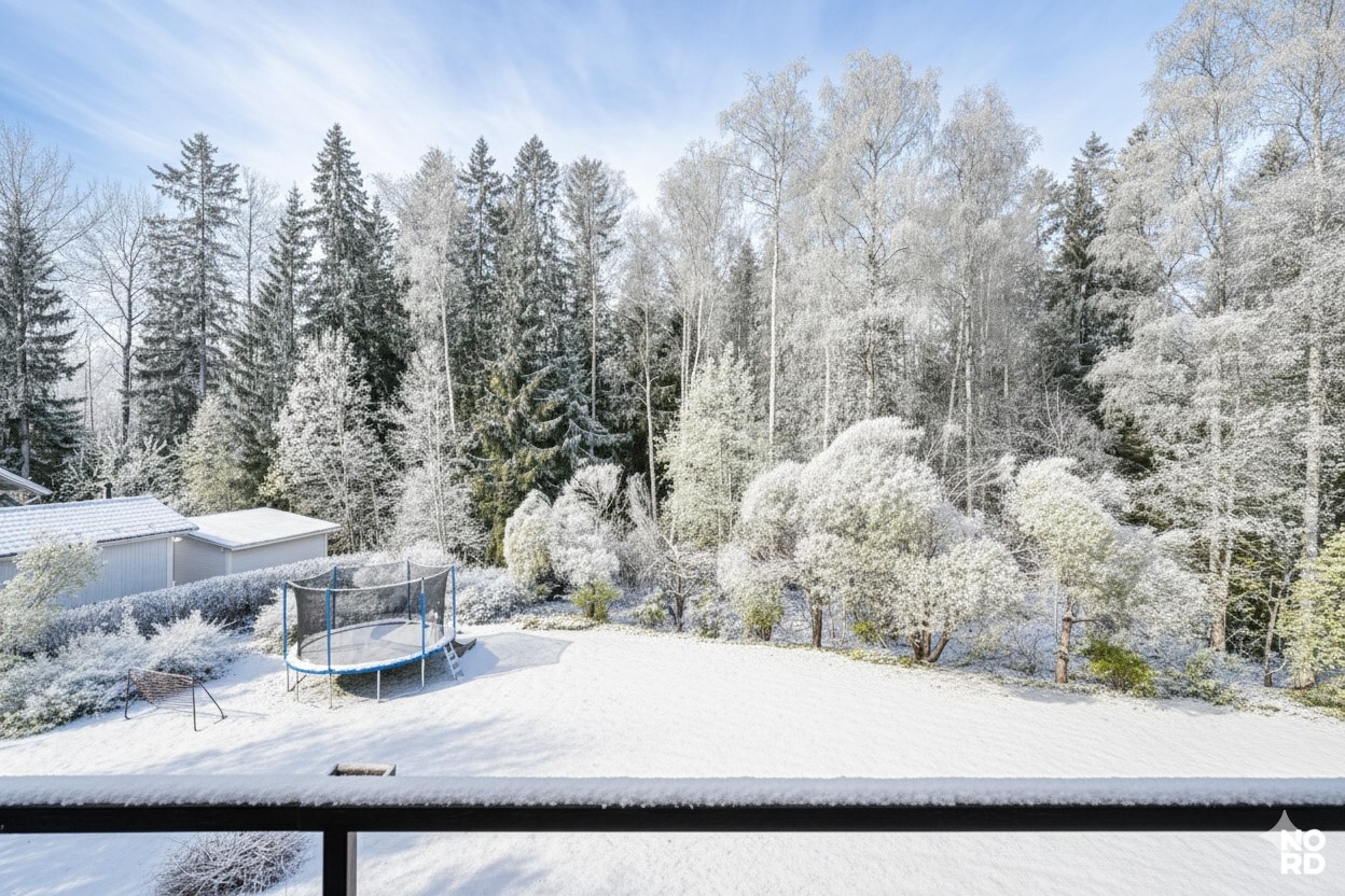 Rauhallisella paikalla Korson suositulla pientaloalueella päättyvän tien päässä iso omakotitalo.