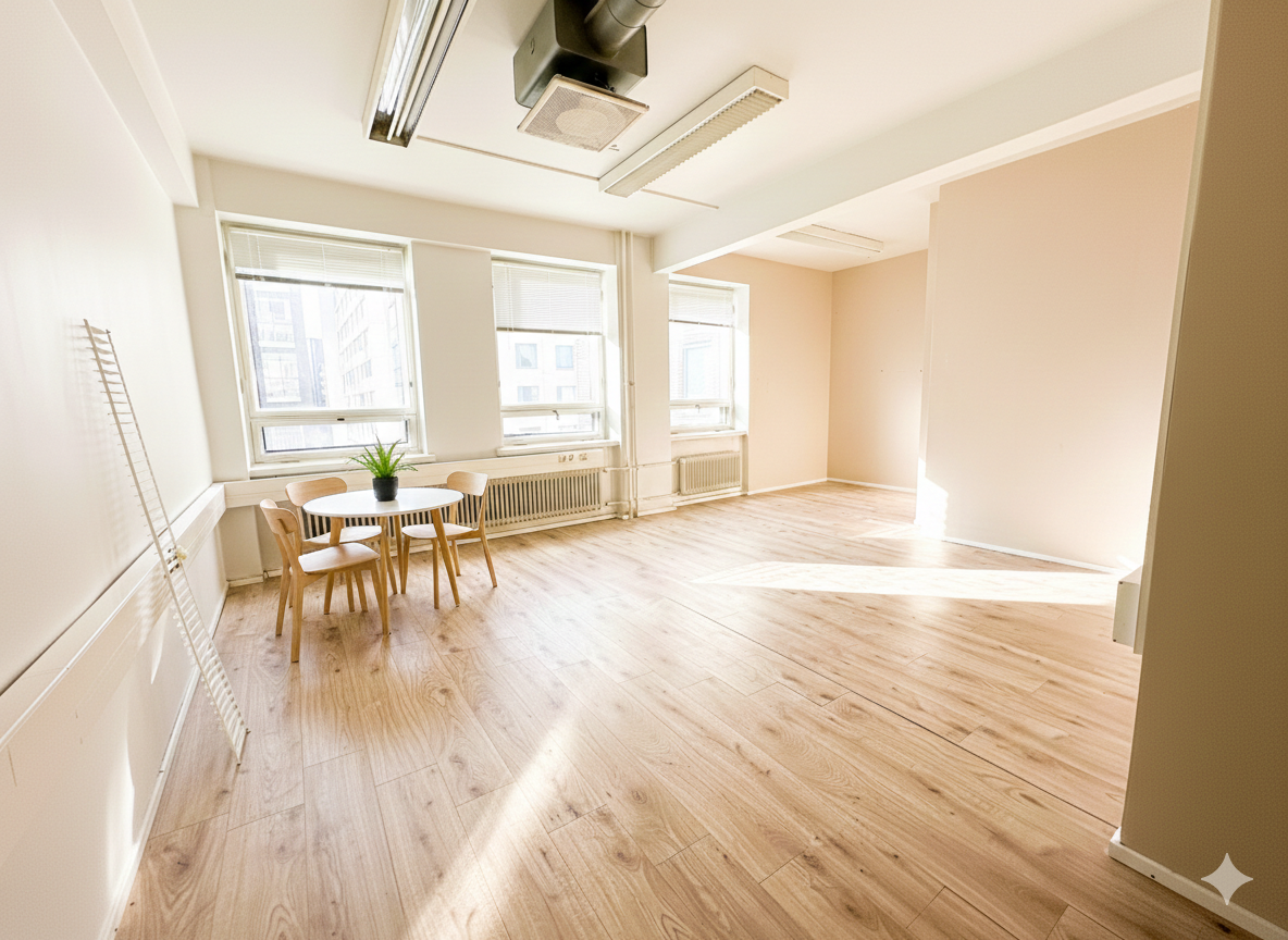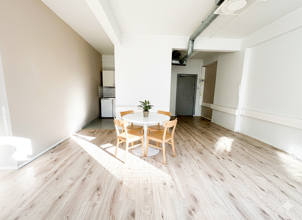 Tila soveltuu esimerkiksi ompelimoksi, muusikon huoneeksi, keramiikka- tai taidehuoneeksi, toimistoksi, hierontahuoneeksi tai kynsistudioksi. Toimistohuoneisto on Arabia Liiketalo Oy:n omistama, ja toiveena on solmia pitkäaikainen vuokrasuhde.