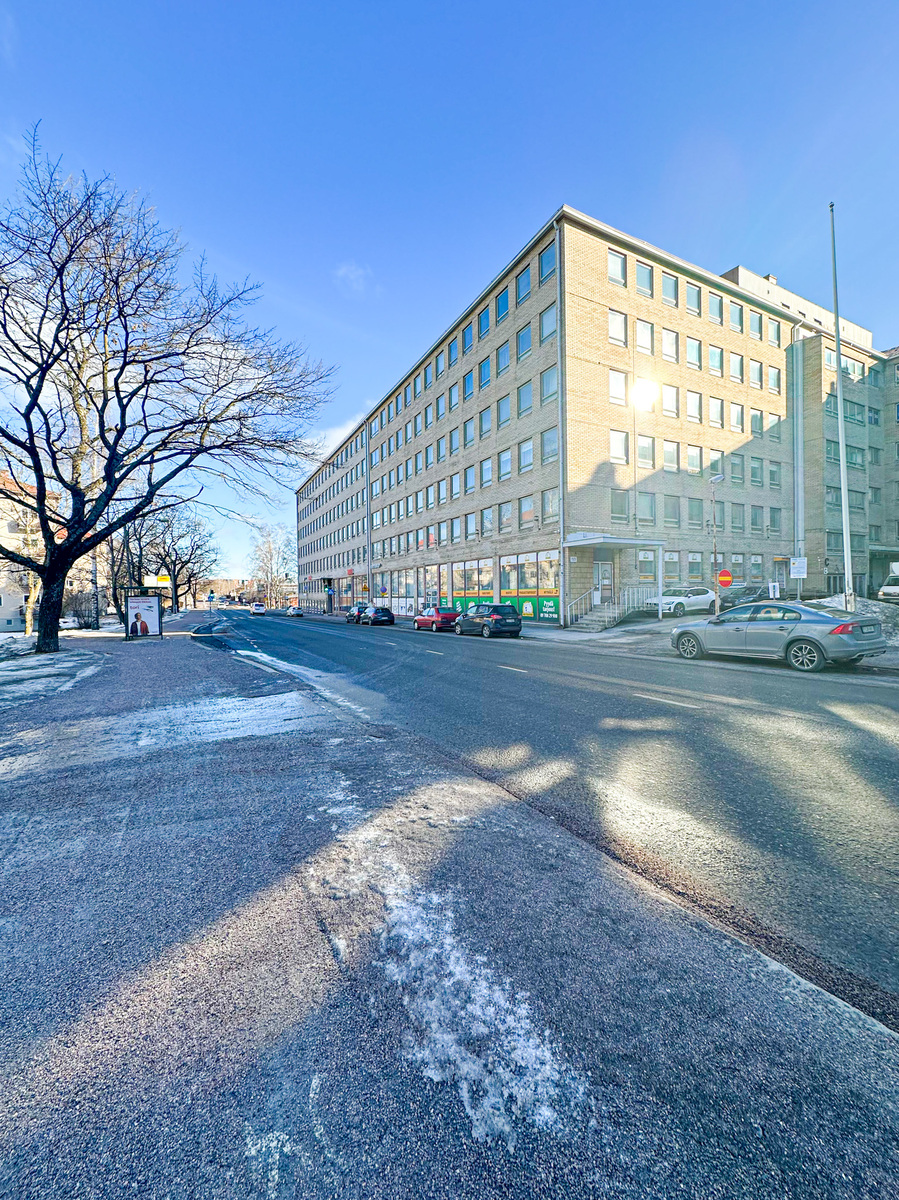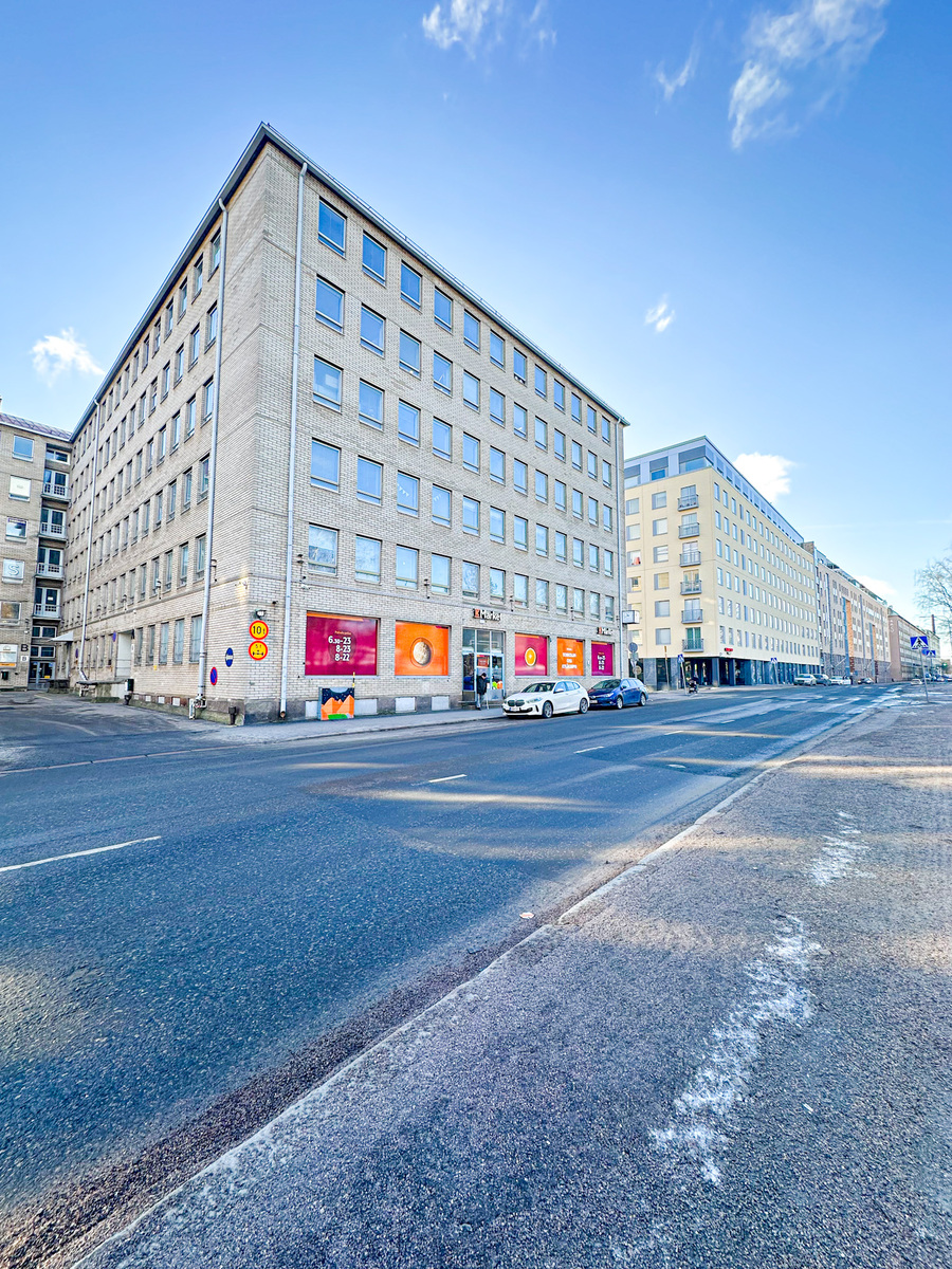 Talo sijaitsee vilkkaalla ja hyvällä paikalla, joka tarjoaa monipuolisia palveluita ja erinomaiset liikenneyhteydet. Toimistohuoneistoon pääsee A-rapun kautta, ja sisäänkäynti tilaan tapahtuu rapun sisäpuolelta. Huoneistossa on siisti WC ja pesuallas. Keittiössä on kahden levyn liesitaso, tiskiallas ja pieni jääkaappi. Toimiston ikkunat on peitetty ohuella kalvolla, joka tarjoaa yksityisyyttä säilyttäen samalla valoisuuden. Rakennuksessa on useita liikehuoneistoja, toimistoja ja varastoja.