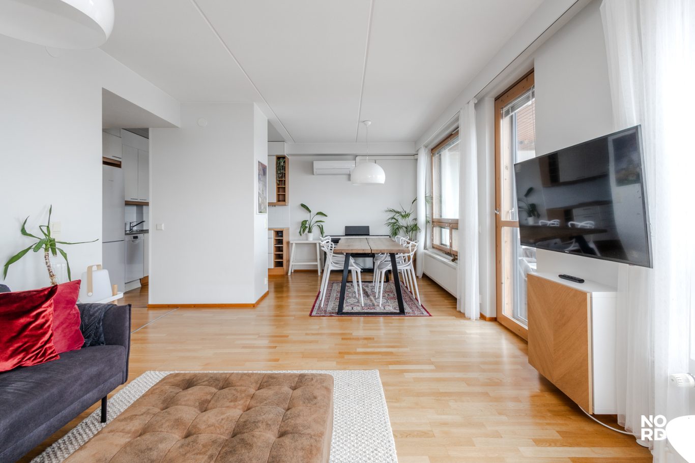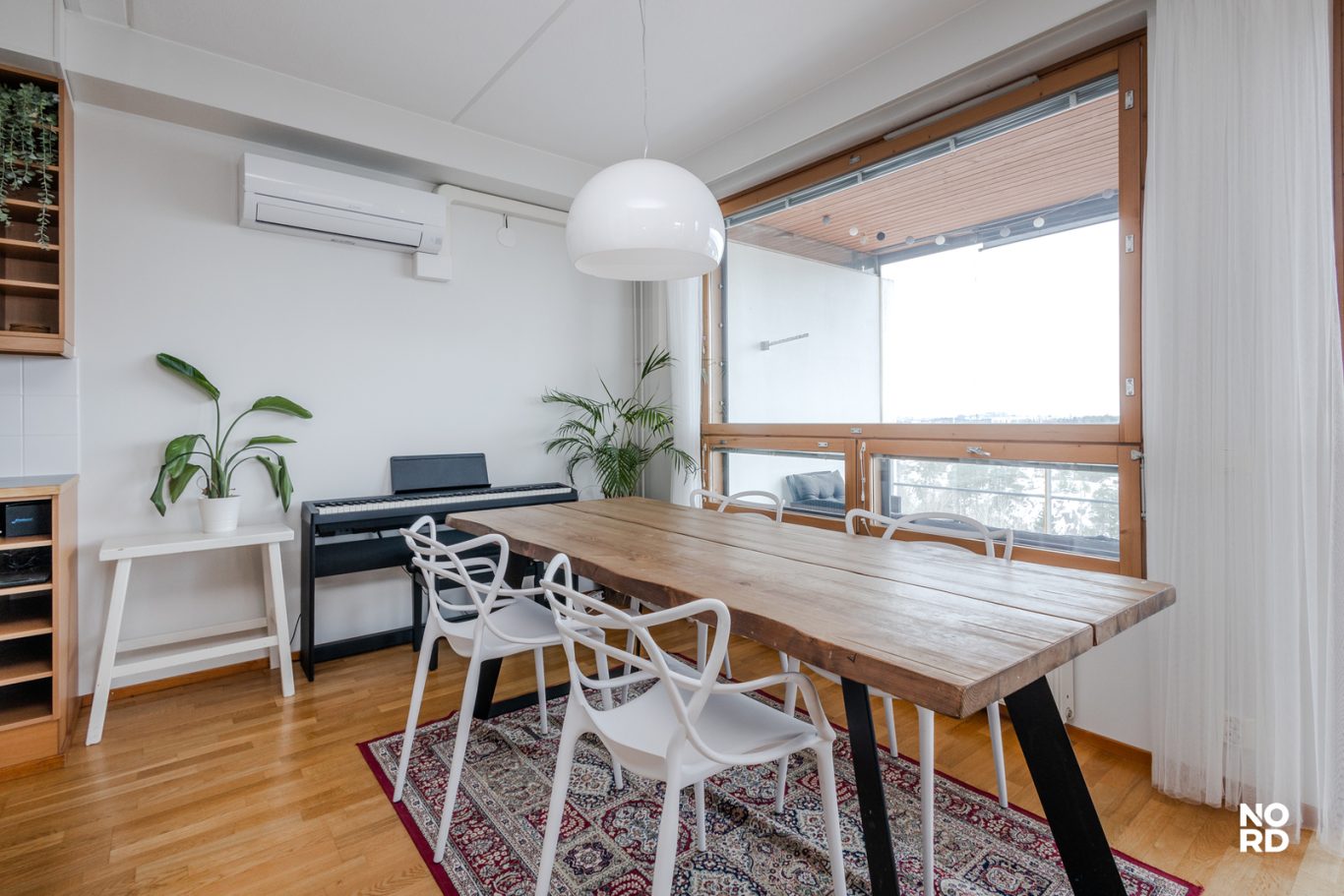 Pohjaratkaisussa on väljyyttä ja koti tuntuu ilmavalta. Korkealla on myös hiljaista, liikenteen melut eivät kuulu.