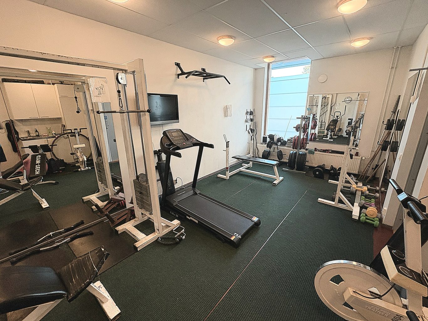 Yhtiöllä on oma kuntosali, joka helpottaa kuntoilusuunnitelmia.