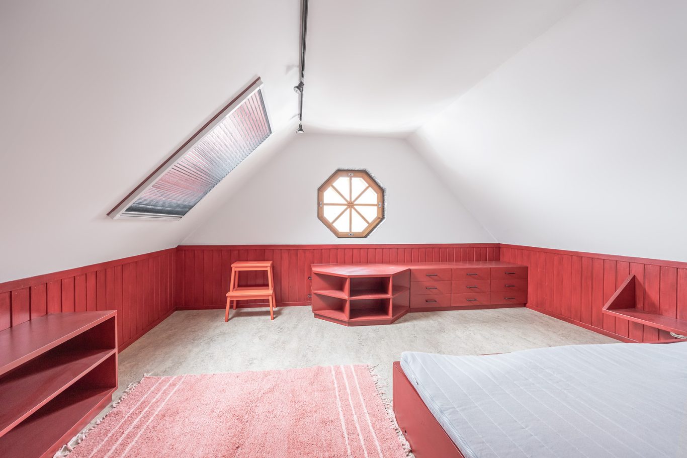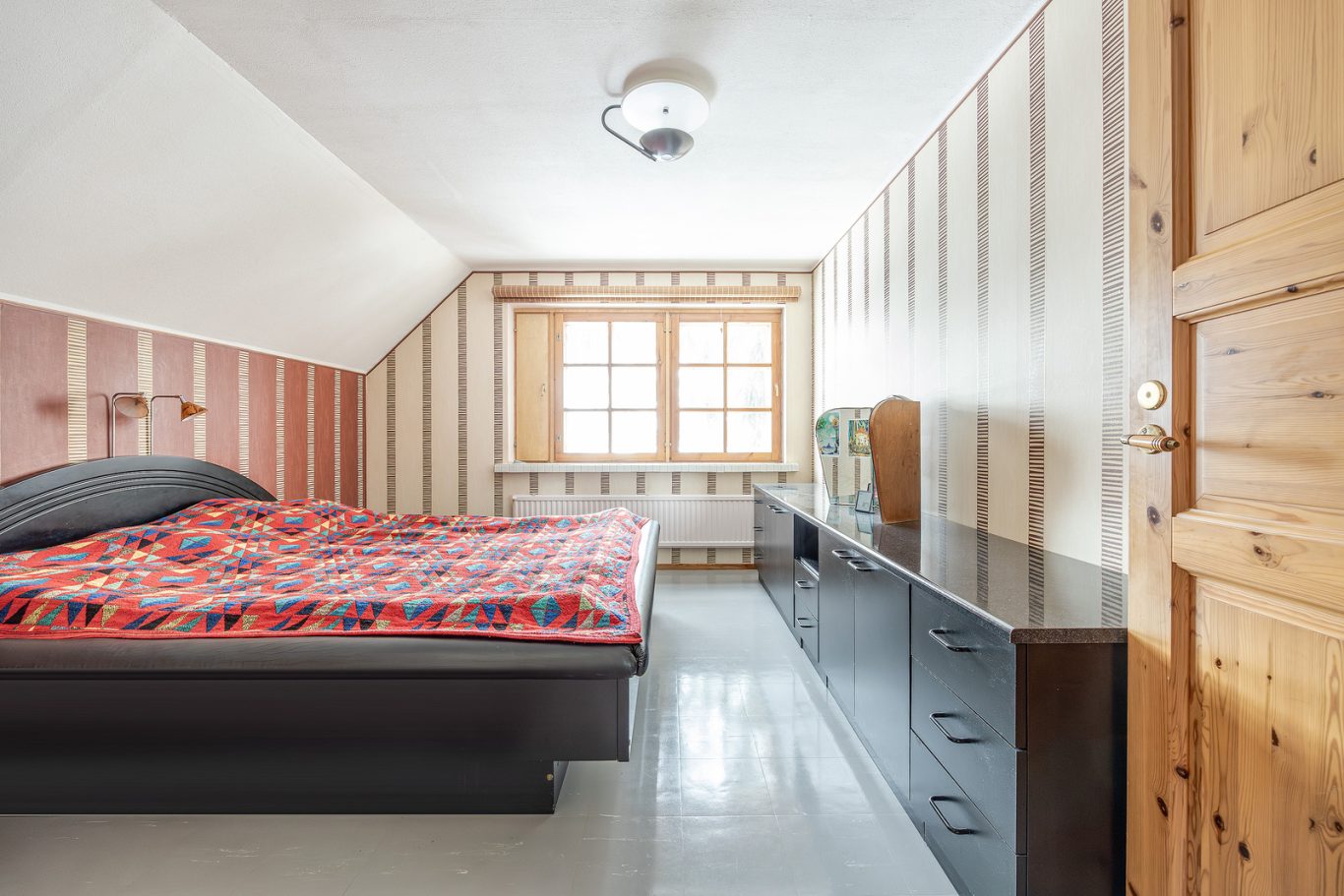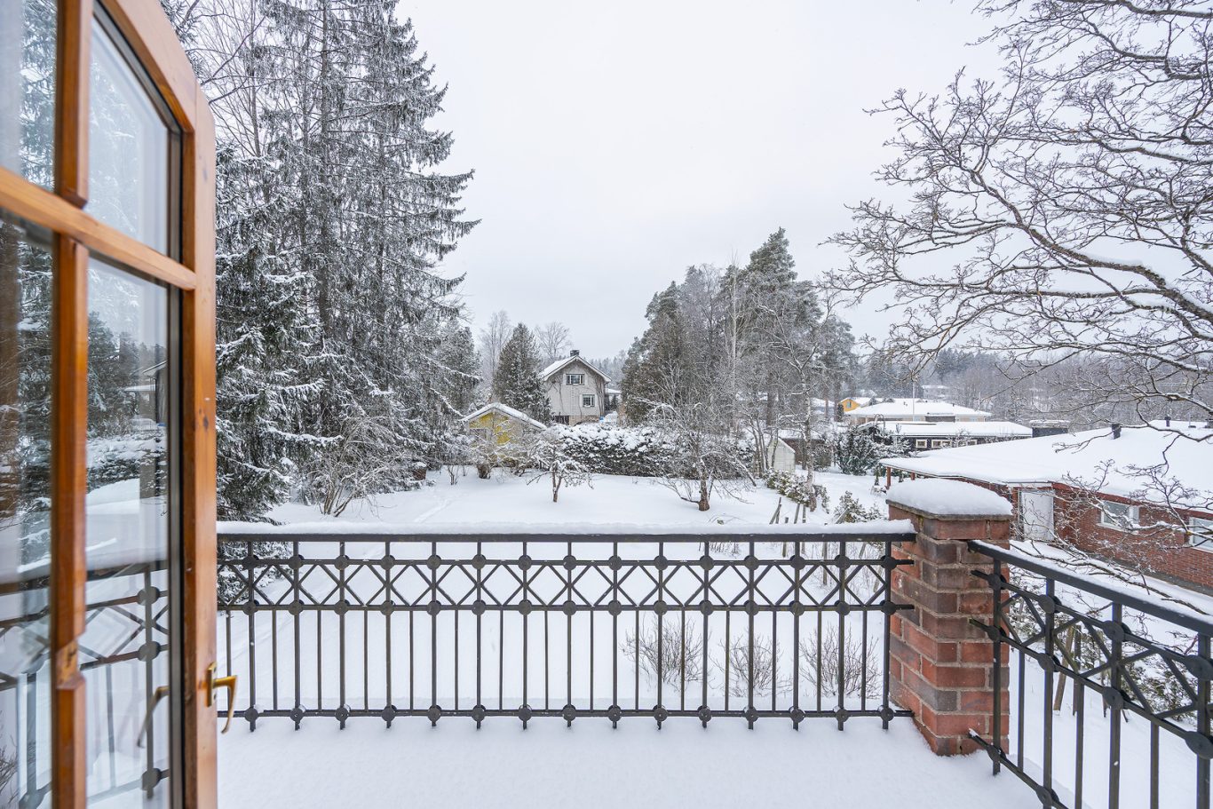 Yläkerrassa on neljä makuuhuonetta, parvekkeellinen kylpyhuone wc:llä, kolme erillistä käyttöullakkotilaa, toinen suurikokoinen parveke on toisella puolen taloa.