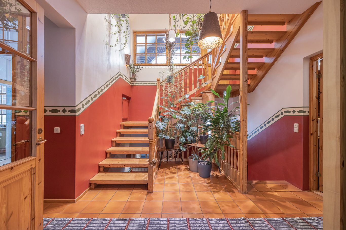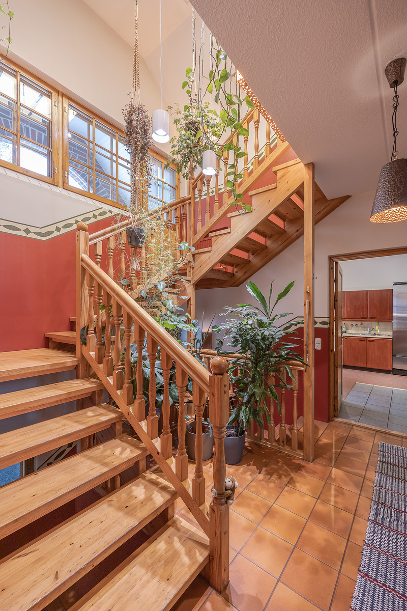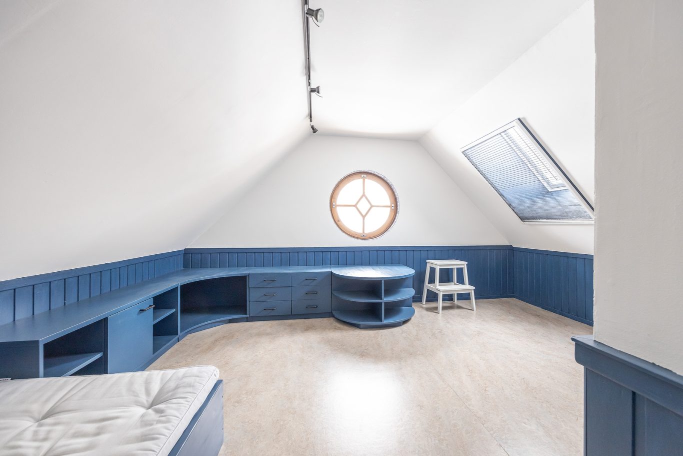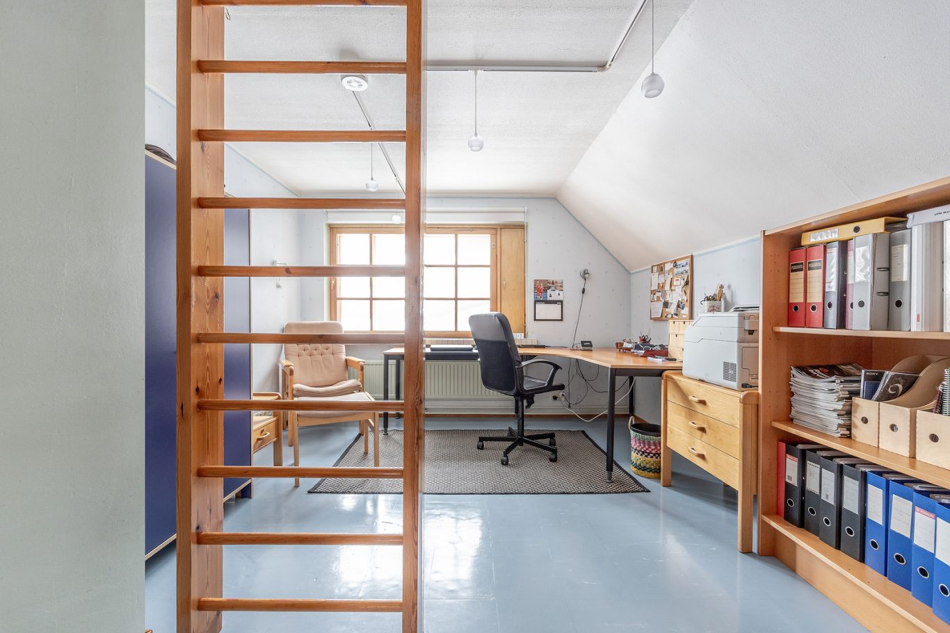 Yläkerrassa on neljä makuuhuonetta, parvekkeellinen kylpyhuone wc:llä, kolme erillistä käyttöullakkotilaa, toinen suurikokoinen parveke on toisella puolen taloa.
