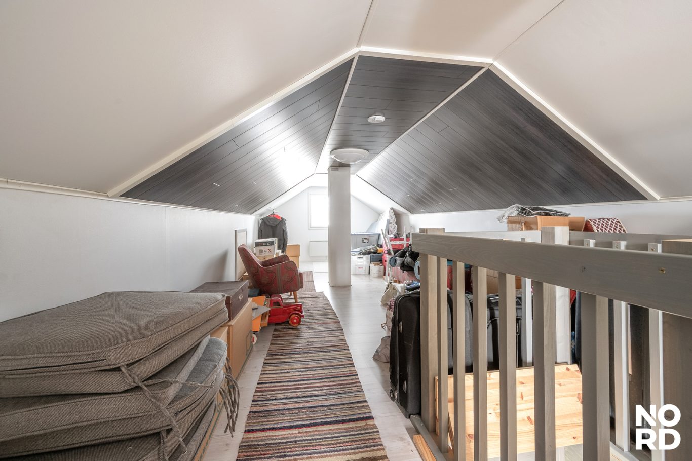 Itse talo on suunniteltu käytännöllisyyttä ja viihtyisyyttä ajatellen. Tilava, puolilämmin ullakko tuo runsaasti kaivattua säilytystilaa ja helpottaa arjen järjestelyjä. Kokonaisuus on harkittu ja lämminhenkinen – koti, joka tuntuu kodilta heti sisään astuessa.