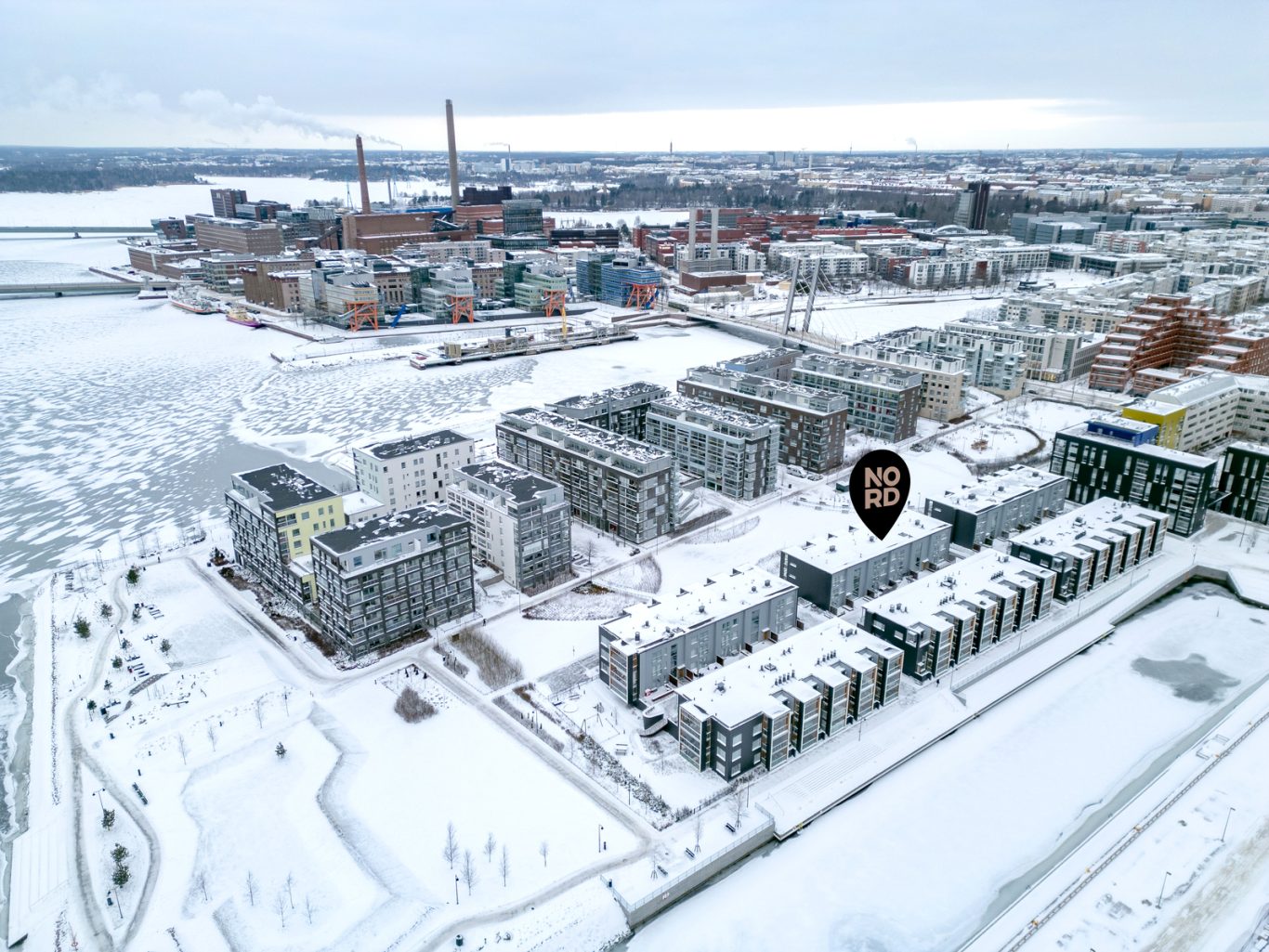 Tasokasta asumista merellisessä Jätkäsaaressa. Korkeatasoinen päätyhuoneisto parvekkeella ja saunalla, sekä upeilla puisto- ja merinäkymillä!