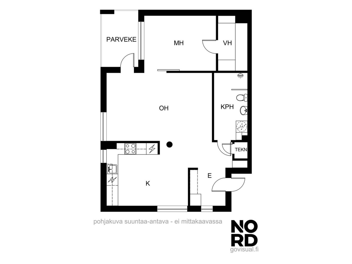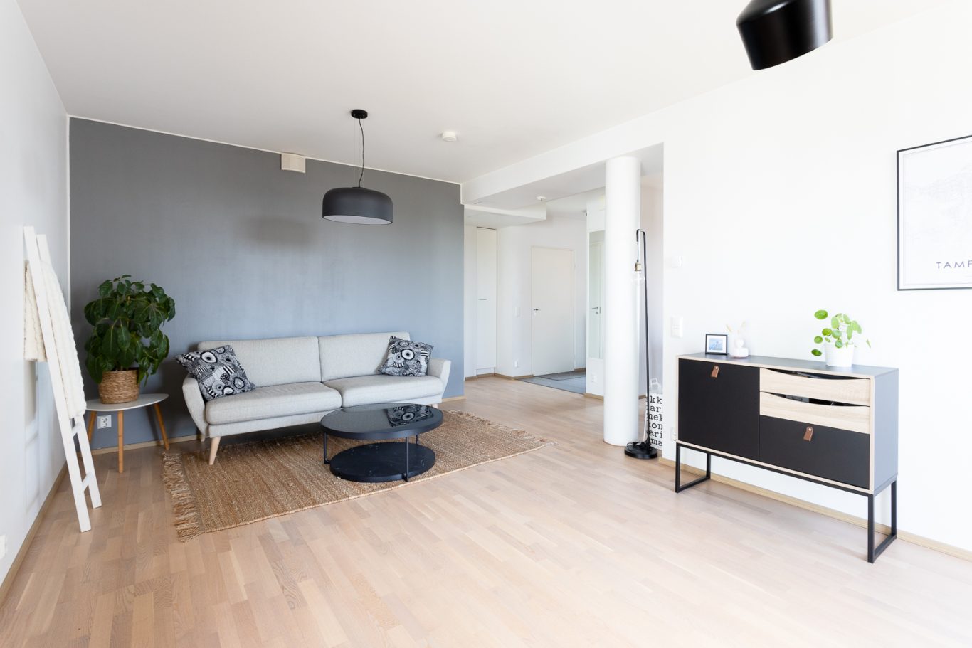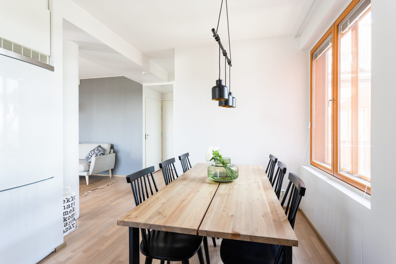 Tilava olohuone kutsuu viihtymään ja tarjoaa loistavat puitteet myös etätyöpisteelle työpäivän lomassa voit ihailla vaihtuvia jokimaisemia. Keittiö on poikkeuksellisen tilava ja toimiva, ja se tarjoaa runsaasti kaappi- ja laskutilaa sekä luontevan paikan suuremmallekin ruokapöydälle. Ikkunat kahteen ilmansuuntaan tuovat asuntoon runsaasti luonnonvaloa ja avaruutta.
