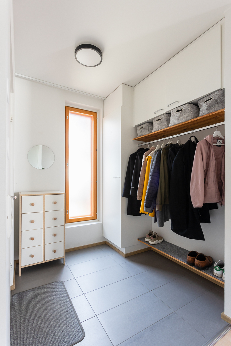 | Tilojen kuvaus | Tilava vaatehuone, makuuhuoneen yhteydessä. Toimivassa eteisessä laattalattia, tilava säilytyskaapisto sekä ikkuna. |