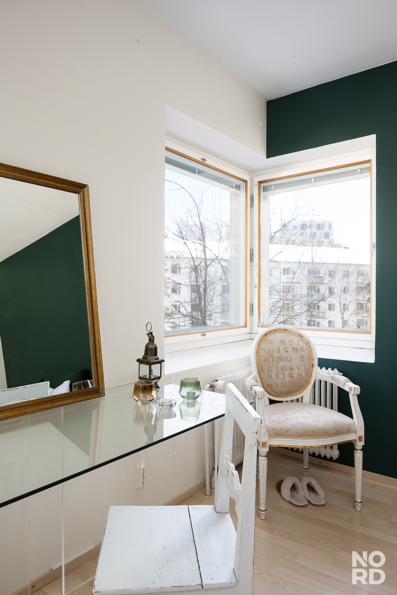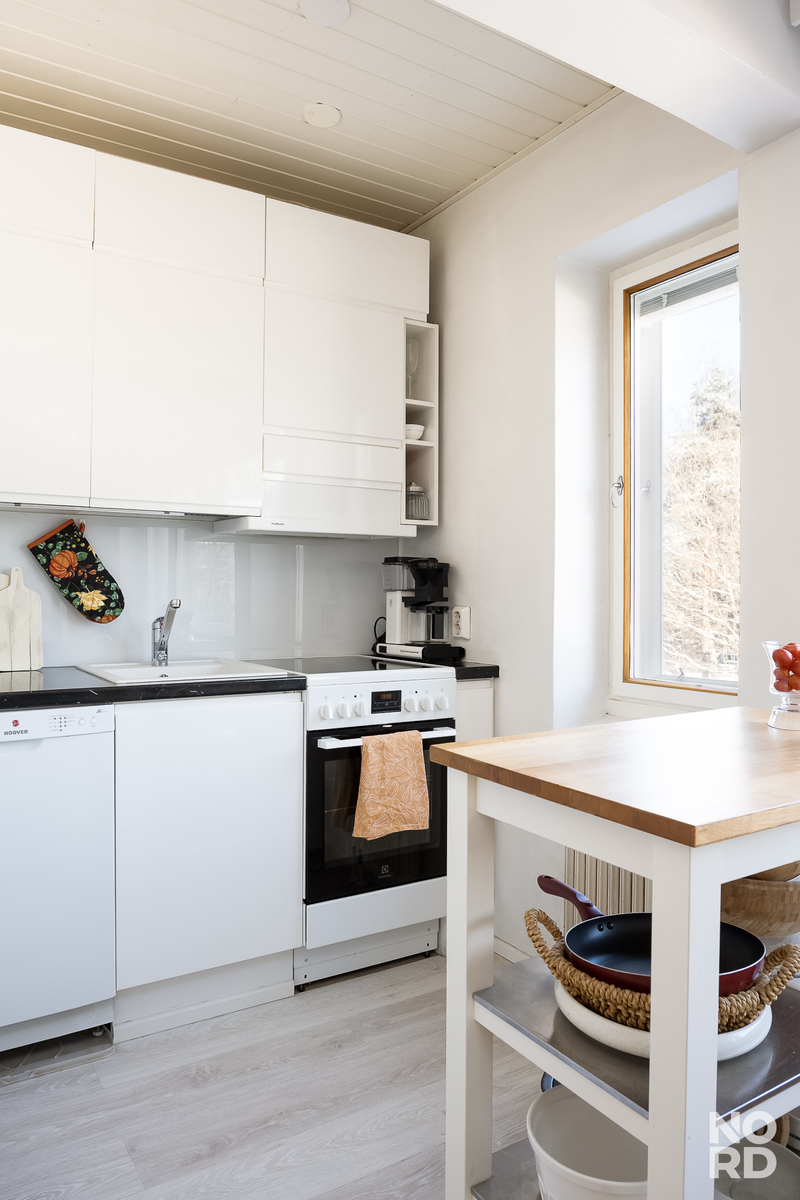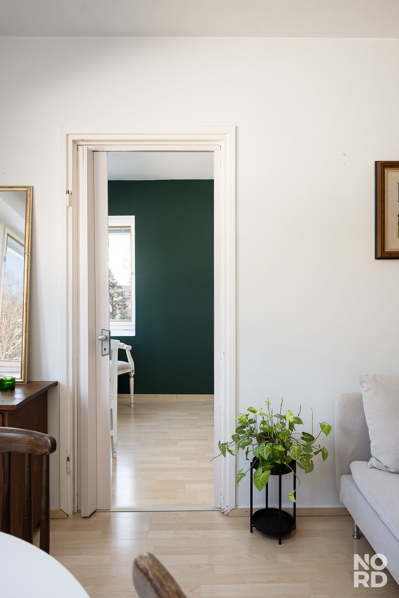 Viehättävä ja todella valoisa kaksio 3/4 kerroksessa. Avokeittiö yhdistyy olohuoneeseen saumattomasti ja makuuhuoneessa on tilaa myös esim. työpisteelle. Säilytystilaa löytyy makuuhuoneen yhteydessä olevasta vaatehuoneesta. Huoneiston ikkuna suuntaavat itään rauhalliselle kadulle ja makuuhuoneen kulmaikkunoista on näkymät itään ja etelään. Asunnon ranskalainen parveke on kadun puolelle. Huoneistoon kuuluu lisäksi 2 varastotilaa.