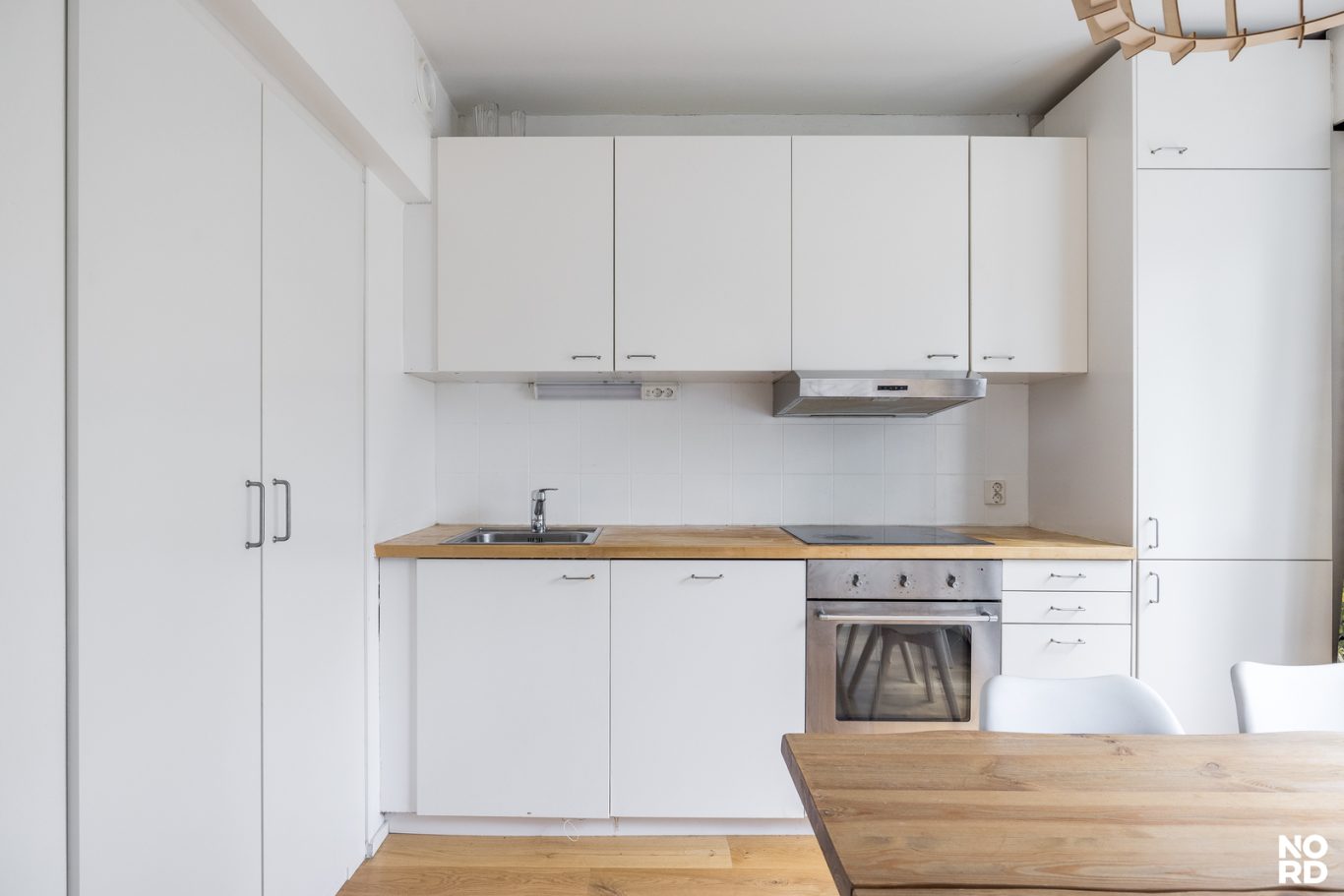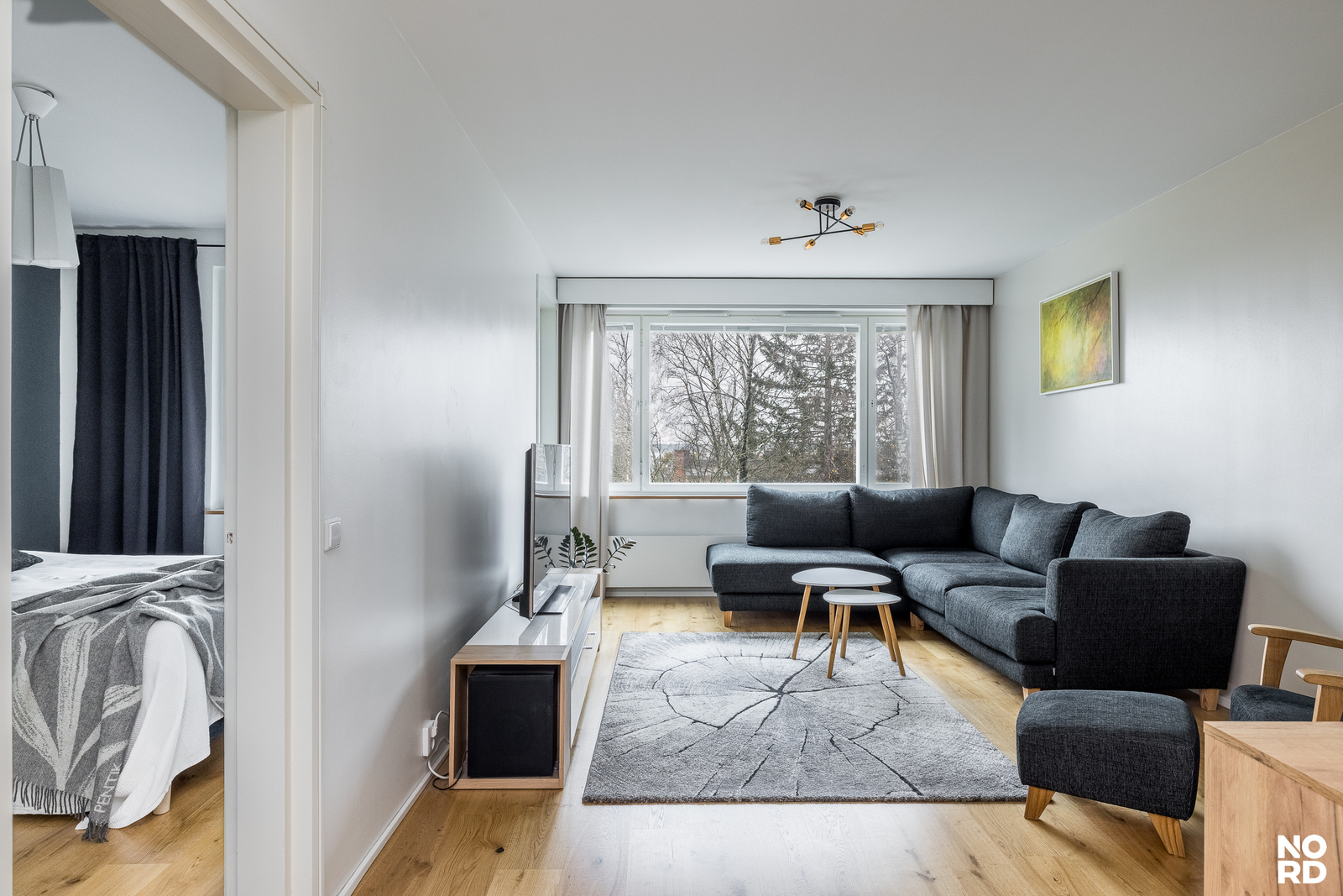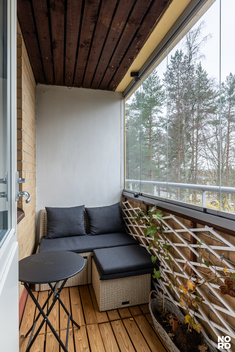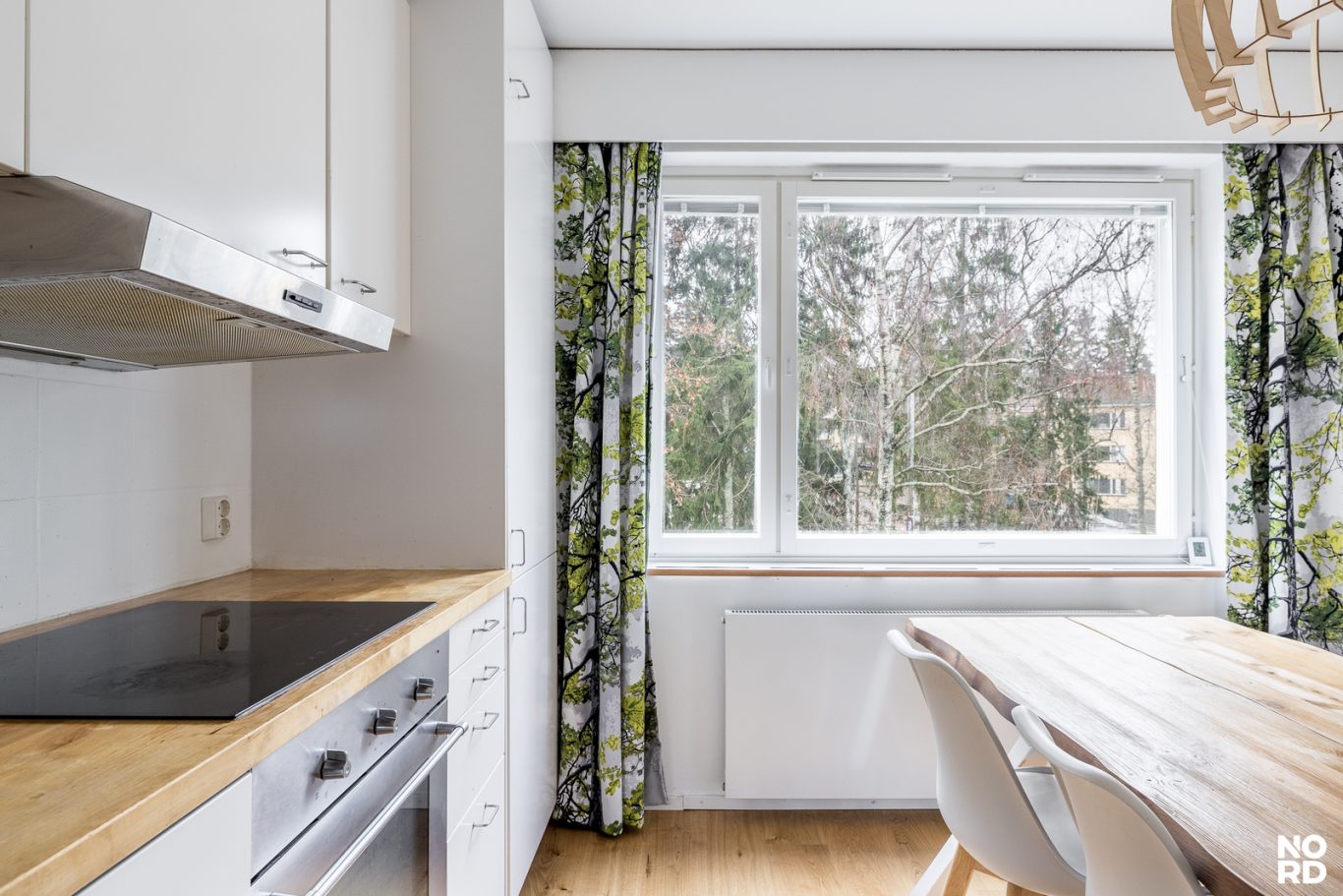 Valoisa läpitalon kaksio vanhassa Lauttasaaressa suurilla ikkunoilla, lasitetulla parvekkeella ja vehreällä näkymällä. Erittäin valoisa ja rauhallinen asunto talon ylimmässä kerroksessa. Vastapäätä ei ole taloja, joten yksityisyys on taattu. Ikkunalla varustettu kylpyhuone on remontoitu tyylikkäästi perinteisen linjasaneerauksen yhteydessä vuonna 2018. Erillinen keittiö on remontoitu talon henkeen sopivaksi vuonna 2015 ja tilaan mahtuu reilunkokoinen ruokailuryhmä. Asunnon pinnat on remontoitu vuonna 2020. Kodista löytyy hyvät säilytystilat vaatehuoneen ansiosta. Tässä tilavassa kaksiossa on monien mahdollisuuksien pohja ja asunto on halutessa muutettavissa kolmioksi.