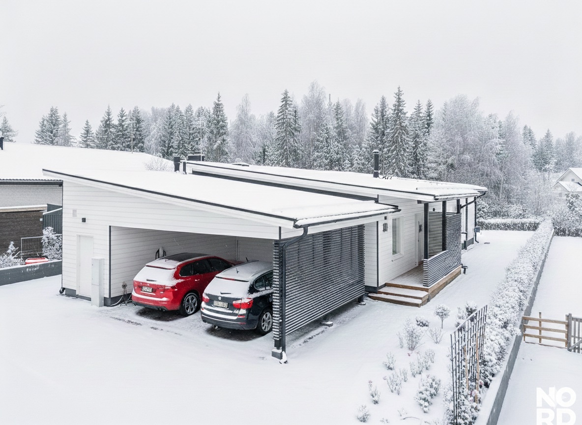 Asfaltoitu ajotie ja piha johtaa kahden auton katokseen, jossa on myös sähköauton latausmahdollisuus. Erillisessä lämpimässä varastossa on mukavasti säilytystilaa. Kodin sijainti on mainio. Citymarketiin ja sen läheisyydessä oleviin kattaviin palveluihin on matkaa n. 700 m. Järvenpään asemalle ja keskustaan on matkaa n. 1,7 km ja omalla autolla pääsee näppärästi Lahden moottoritielle. Päiväkoti on ihan vieressä ja alakoulu reilun puolen kilometrin päässä.