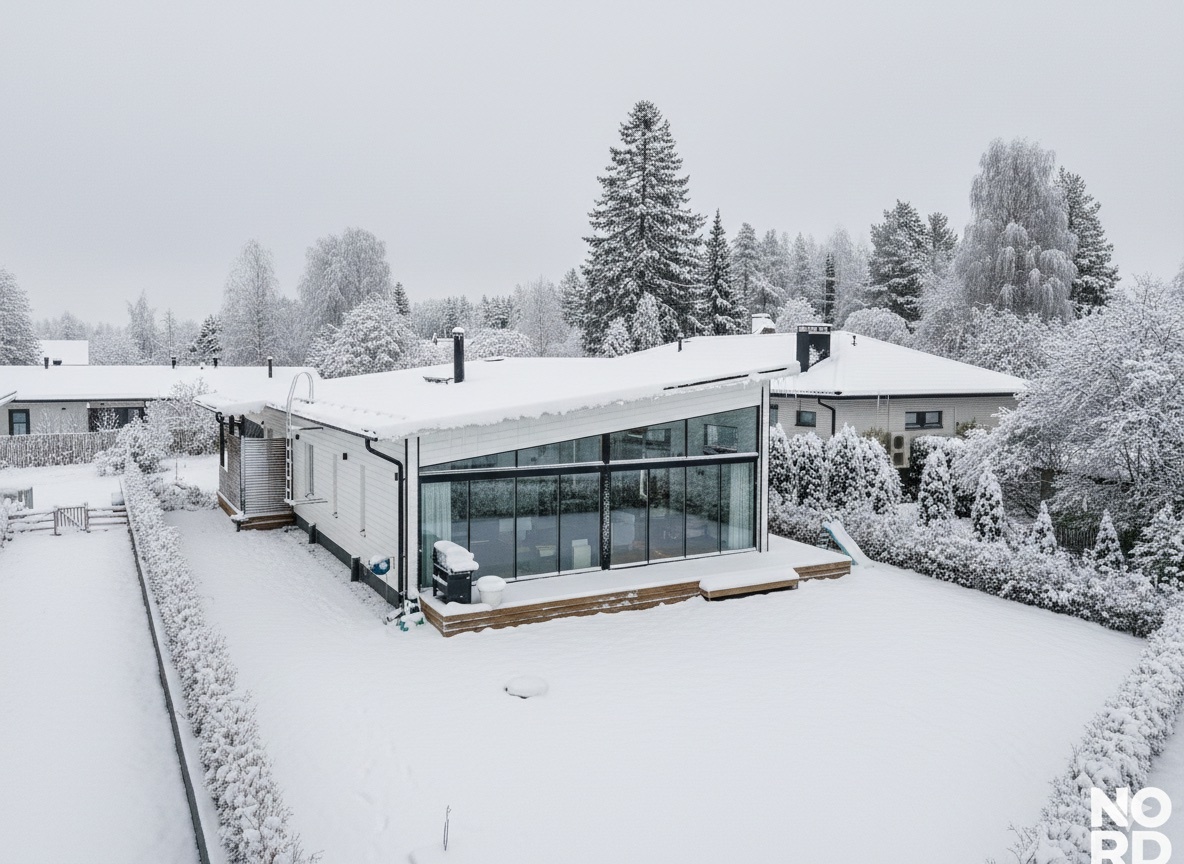 Valloittava, yhteen tasoon rakennettu uudenkarhea omakotitalo Järvenpään Isokydössä.