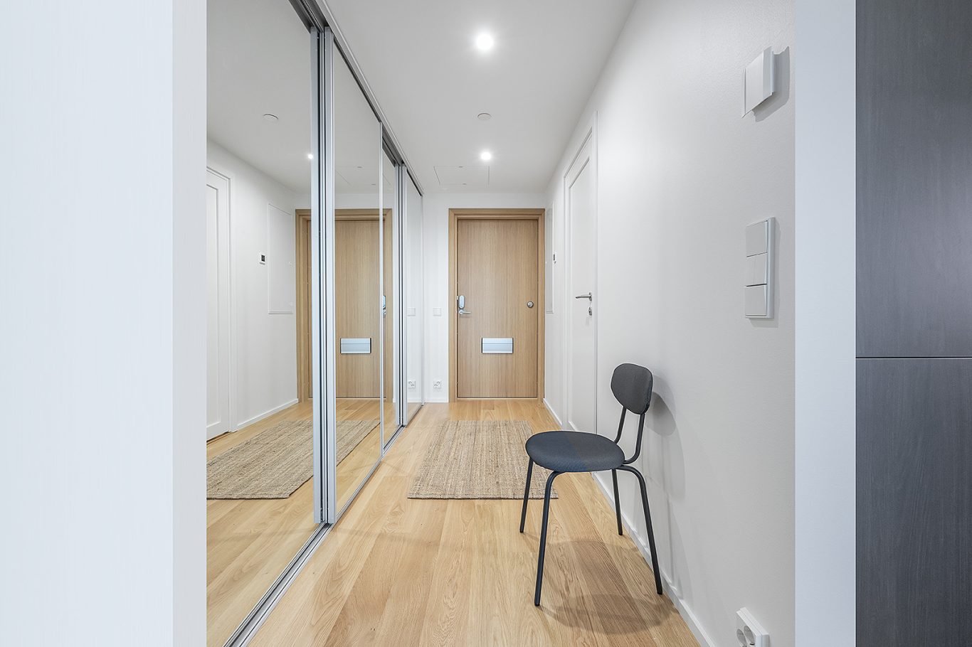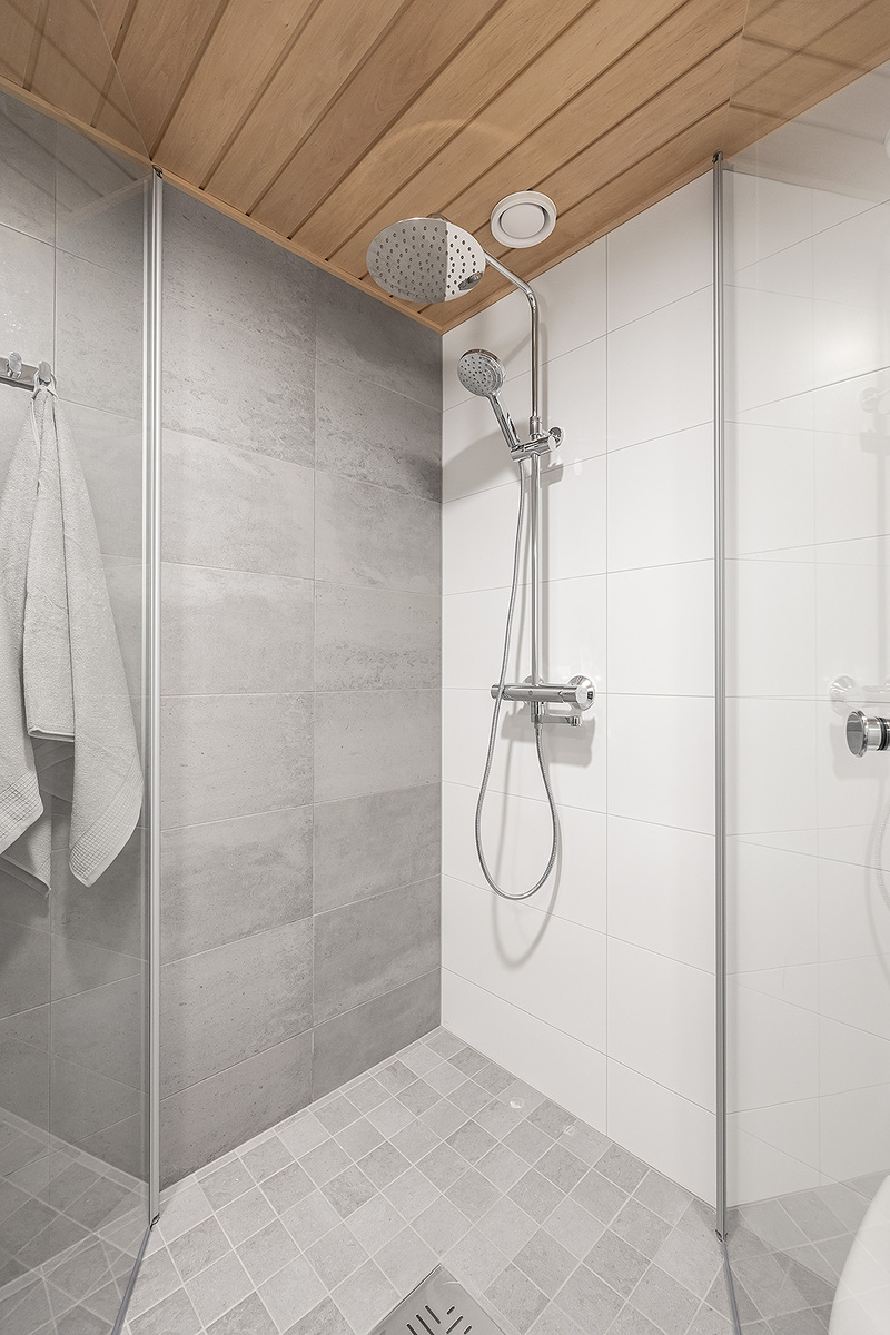 Lattiat leveätä yksisauvaista Tammiparkettia, kotimainen Topi-keittiöiden keittiö integroiduilla kodinkoneilla. Laadukas kylpyhuone, kuivaava pesukone kuuluu varustukseen. Asunnossa on vesikiertoinen lattialämmitys ja oma huoneistokohtainen ilmanvaihtokone.
