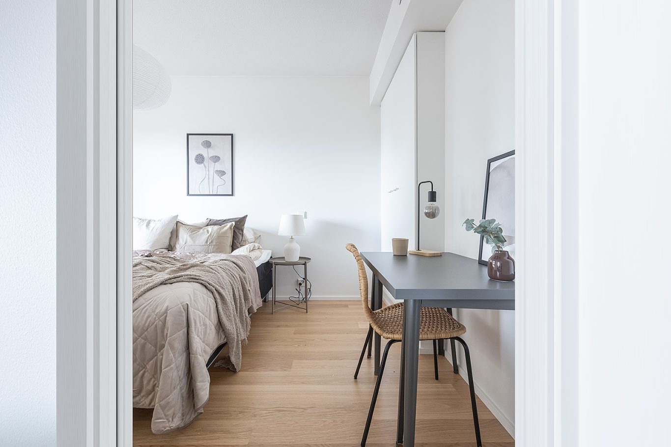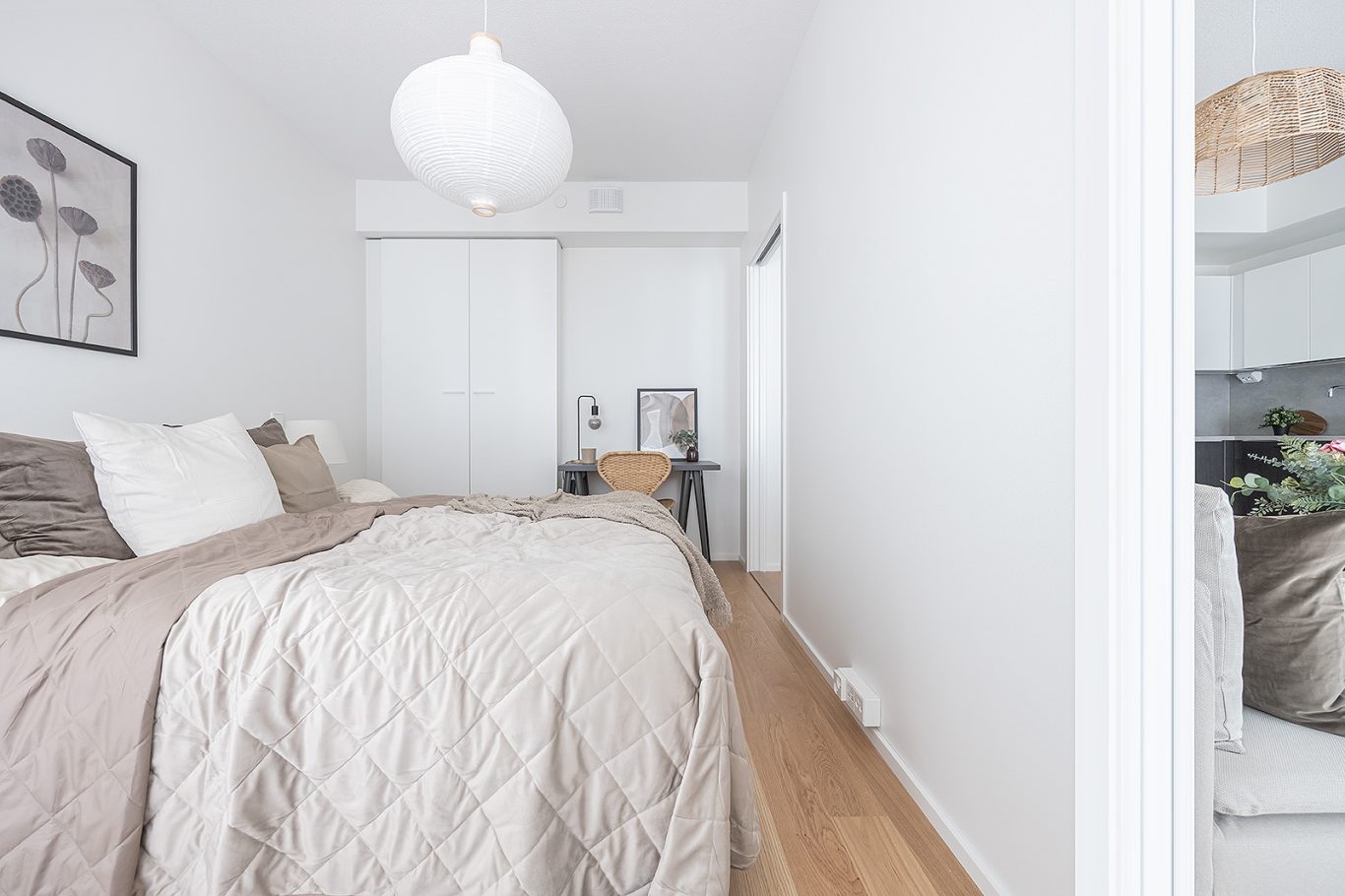 Erillinen makuuhuone, runsaasti säilytystilaa, huoneistoon kuuluu myös tilava lämmin varasto.