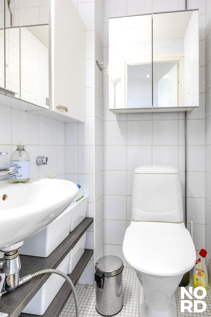 This landmark building in the area stands on its own plot. The housing company enjoys low maintenance fees, and no major renovations are planned. From the apartments balcony you can enjoy views over Meripellontie towards Vartiokylä Bay, while on the opposite side a new, high-quality seaside residential area is being developed.