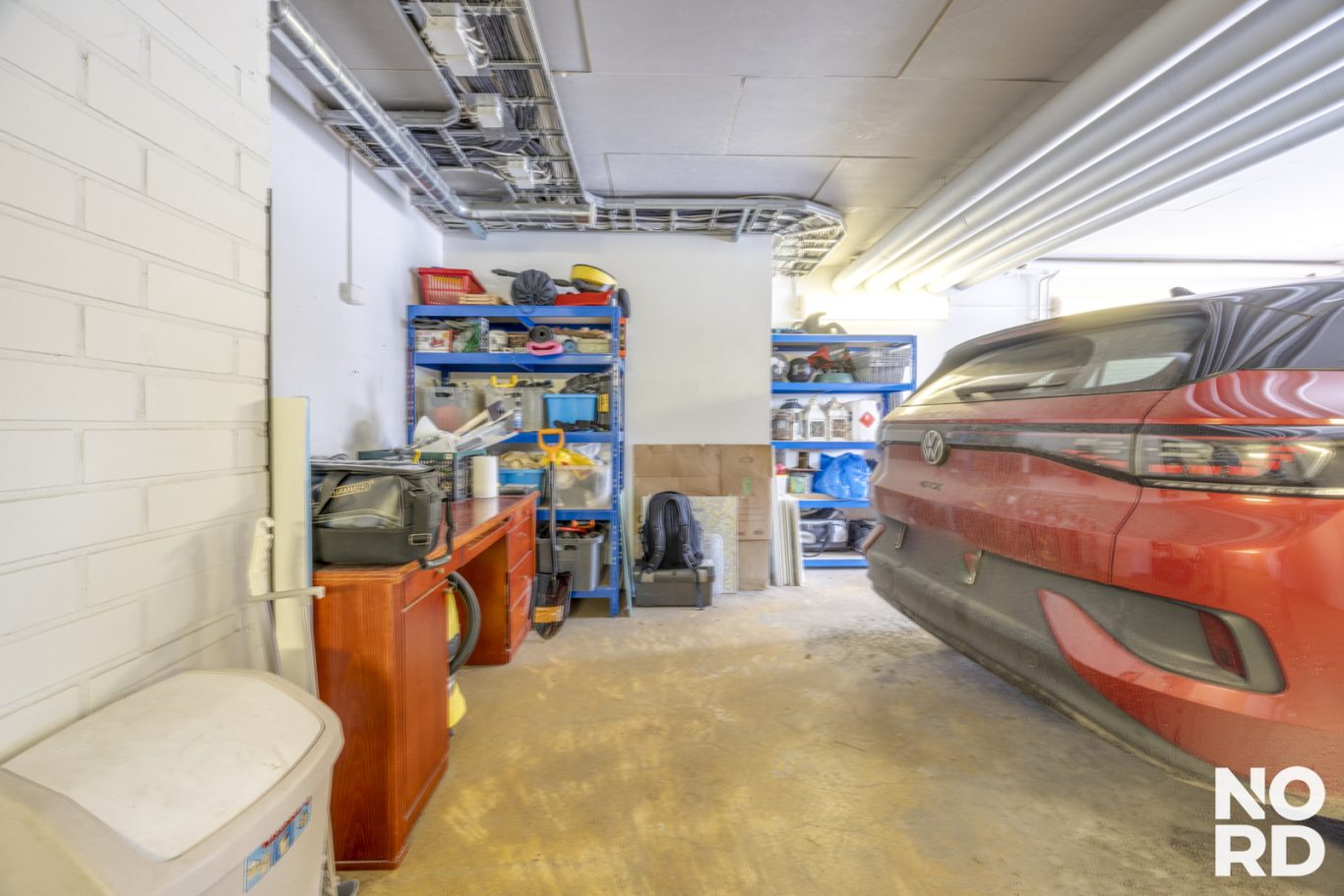 Asunnon mukana on mahdollista ostaa harvinaisen suuri, lämmin 25,3 m² autotalli, joka sijaitsee kätevästi porraskäytävän vieressä asunnon alakerrassa.