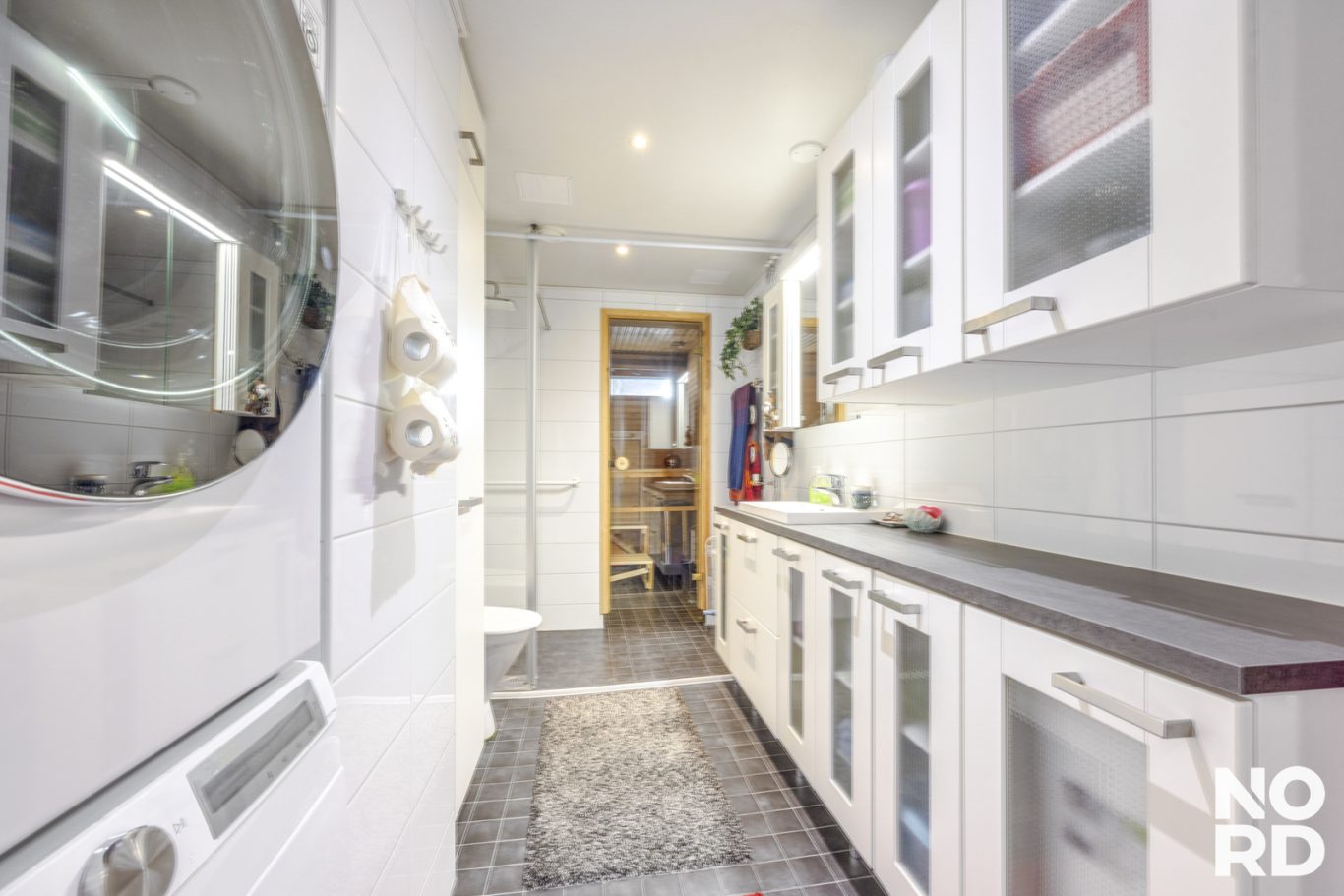 Puotila offers everything for a seaside lifestyle: nearby marinas where boat berths can be inquired, extensive recreational forests, a sandy beach, and community garden plots just around the corner. Everyday services and connections are within easy reach: Puotila metro station approx. 1 km, Easton shopping center approx. 1 km, Itäkeskus shopping mall and Prisma approx. 1.5 km