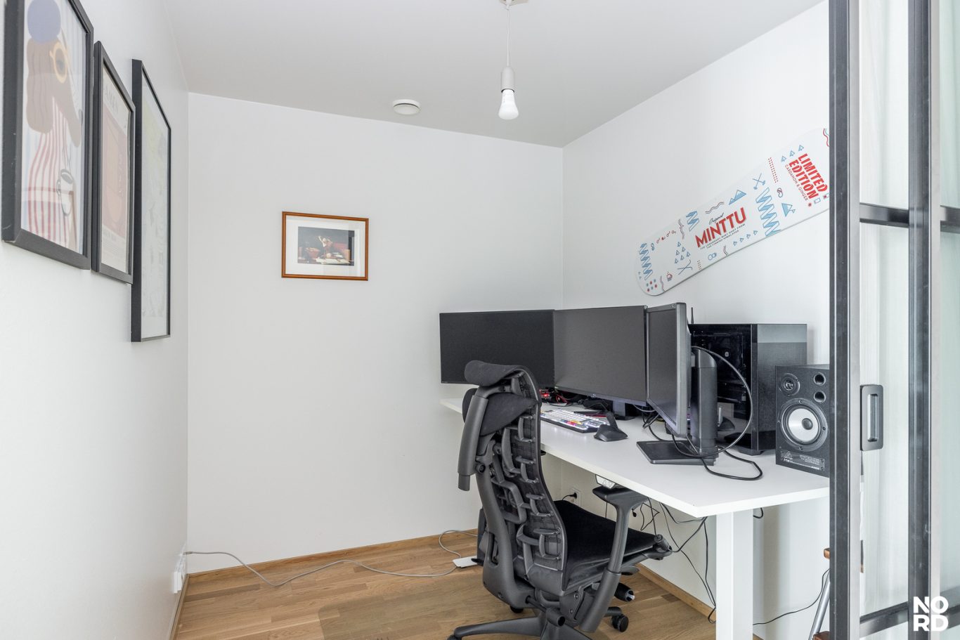 Asunnossa on laadukkaat ja ajattomat materiaalit: parkettilattiat, moderni kylpyhuone sekä toimivat säilytysratkaisut. Taloyhtiö on uudehko, eikä merkittäviä remontteja ole tiedossa. Tonttiosuus on lunastettu.