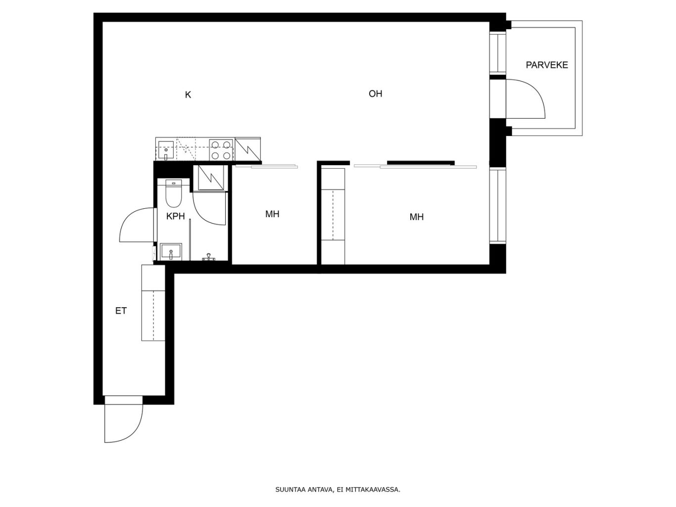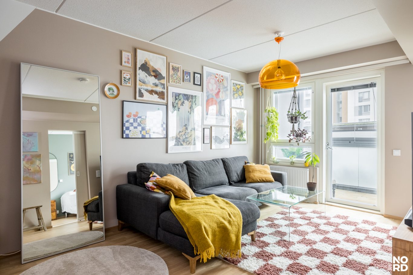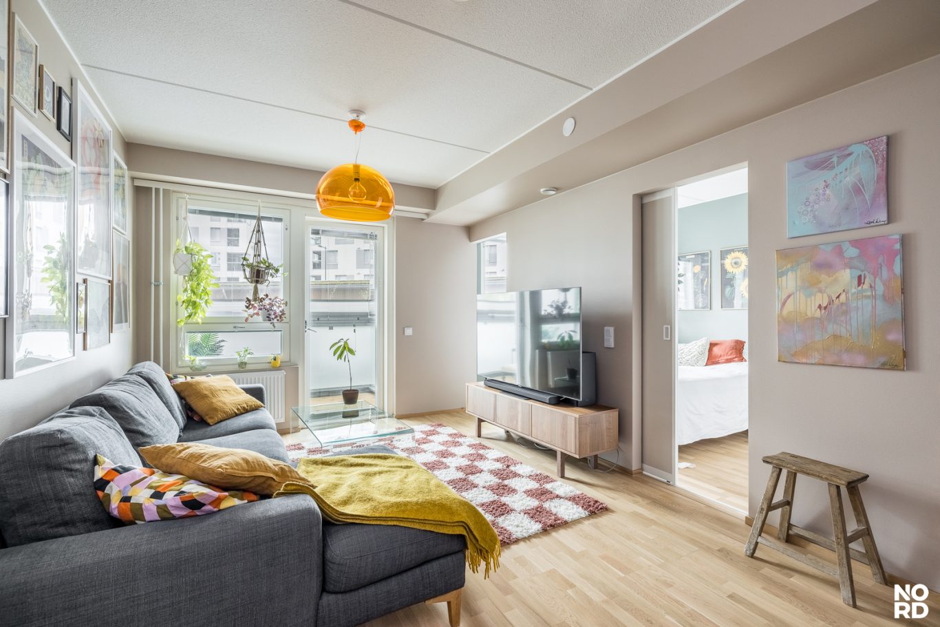 Avara ja hyvin suunniteltu kolmio vuonna 2020 valmistuneessa taloyhtiössä. Tämä ensimmäisen kerroksen asunto sopii erinomaisesti koiratalouteen sekä asukkaalle, joka arvostaa esteetöntä ja helppoa kulkua.