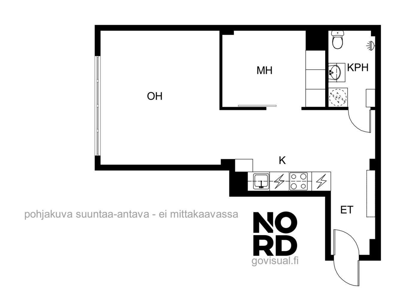 | Lisätietoja pinta-alasta | Pinta-ala ei ole tarkistusmitattu. Hinta ei ole pinta-alaperusteinen. Huoneiston pinta-ala on yhtiöjärjestyksen, isännöitsijäntodistuksen ja myyjän ilmoituksen mukaan 44 m². Yhtiöjärjestyksen mukainen huoneistoselitelmä on 1h+alk+kk. |