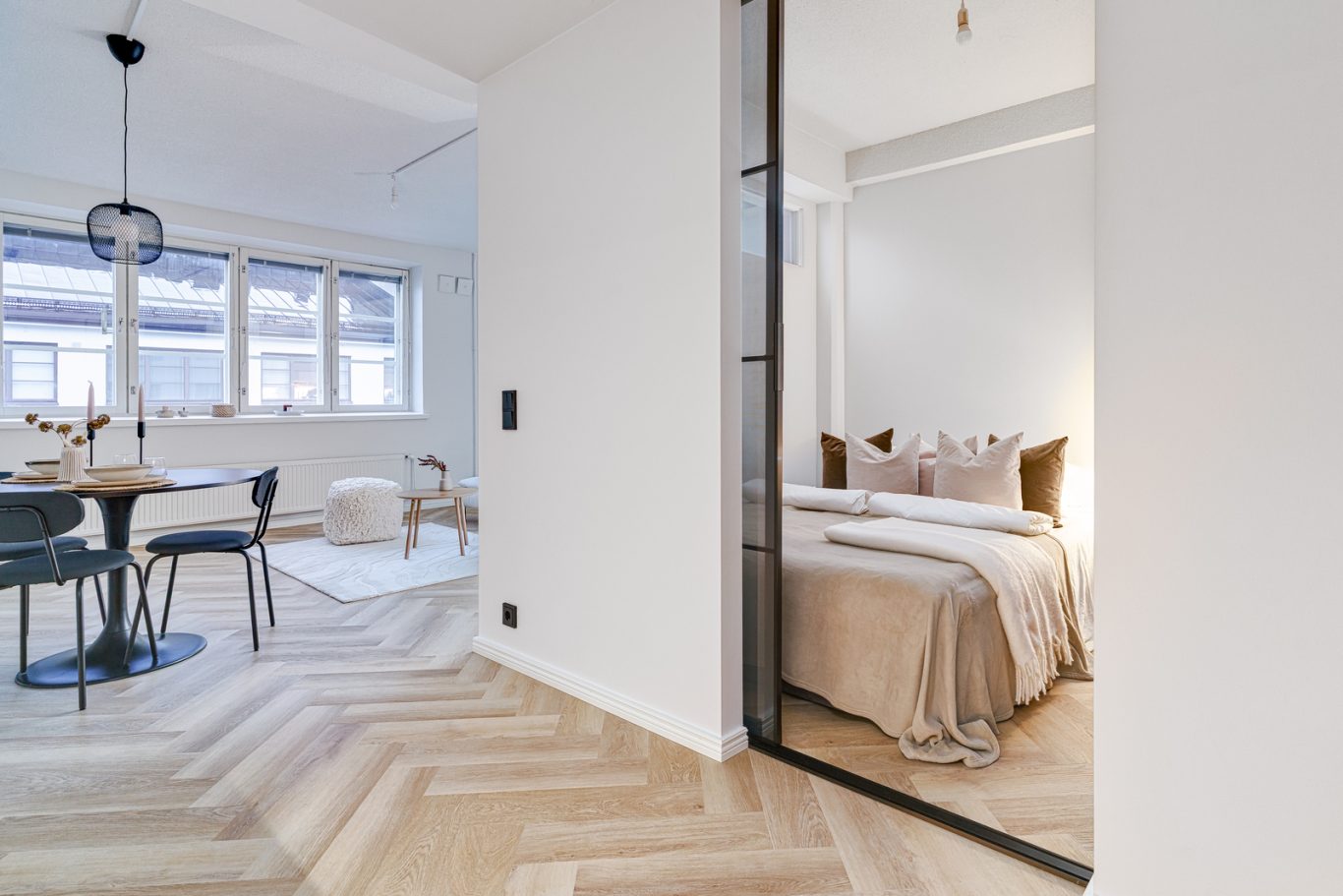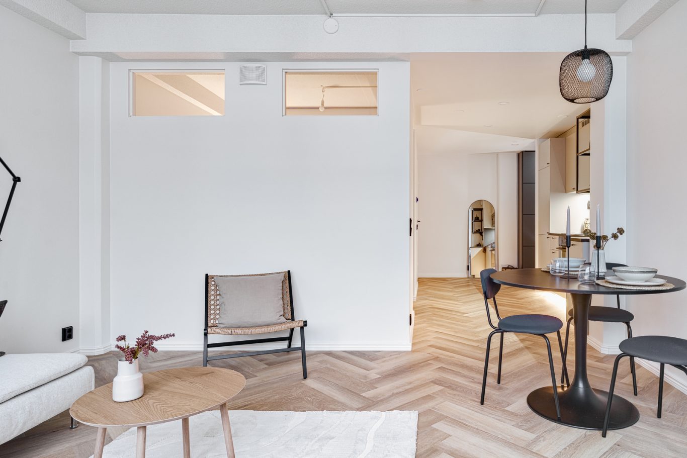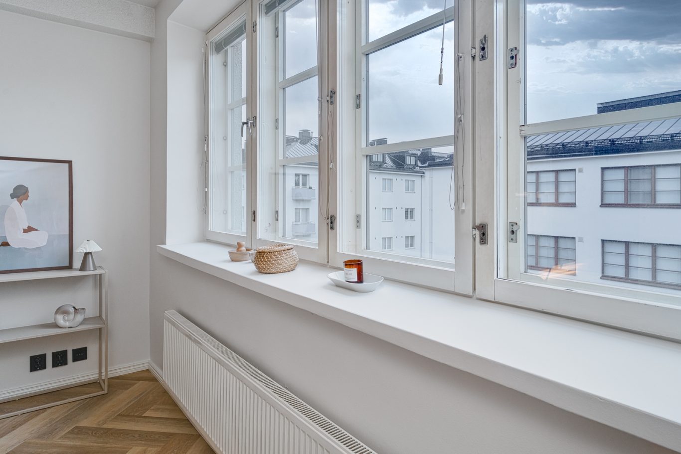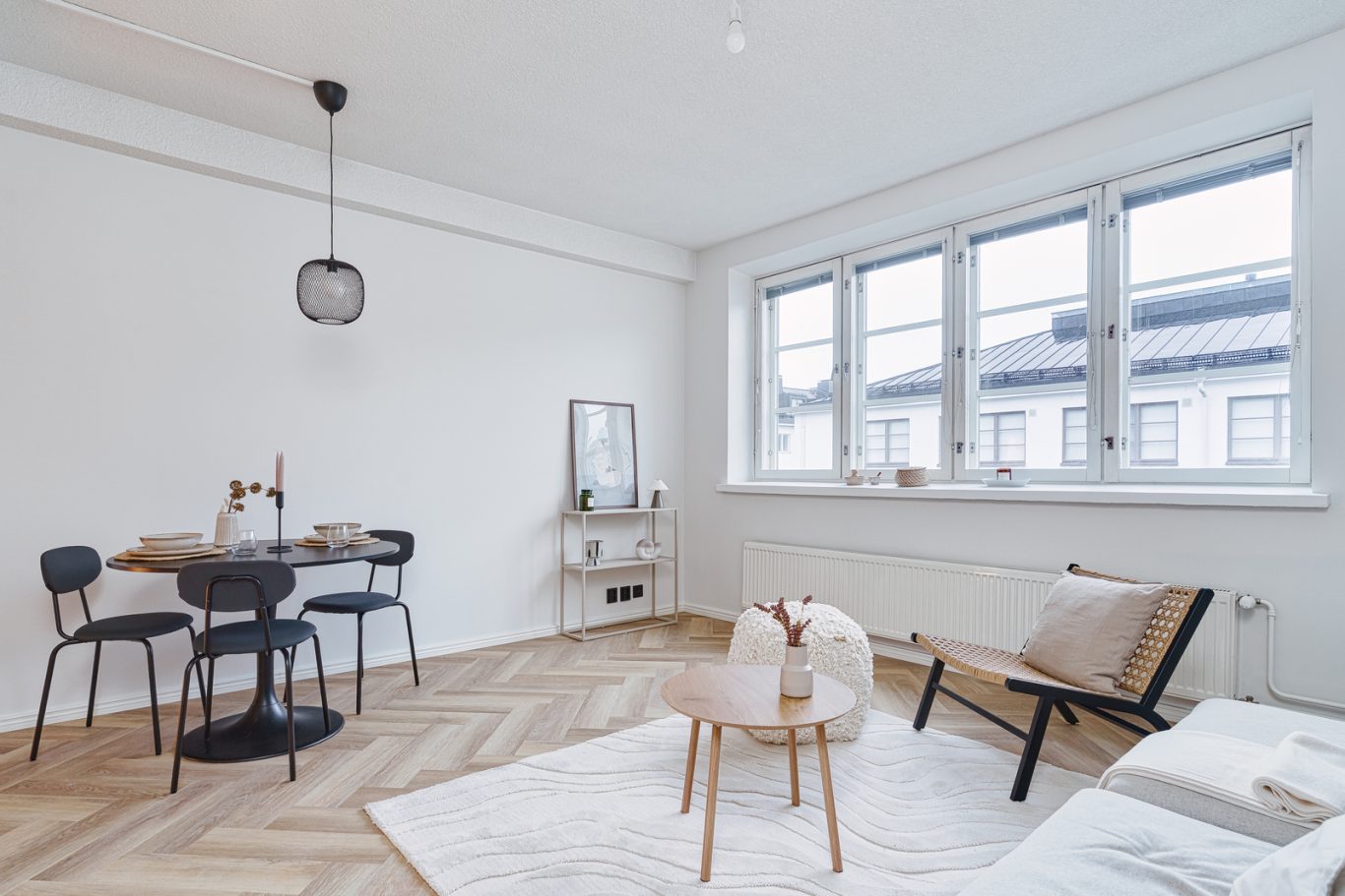 Tämä asunto on täydellinen yhdistelmä lofthenkeä modernilla twistillä. Huoneisto on juuri remontoitu ja lopputulos on pysäyttävän upea. Tyylikkäässä asunnossa on ajanmukainen beige/musta keittiö uusilla integroiduilla kodinkoneilla, makuuhuone liuku ovella, olohuone sekä moderni tummanpuhuva kylpyhuone. Tammen väriset Kalanruoto lattiat. Ylemmän viidennen kerroksen asunnosta on miellyttävät maisemat (taivastakin näkyy) sekä oma rauha. Talo sijaitsee omalla tontillaan. Kaunis sisäpiha oleskeluun.