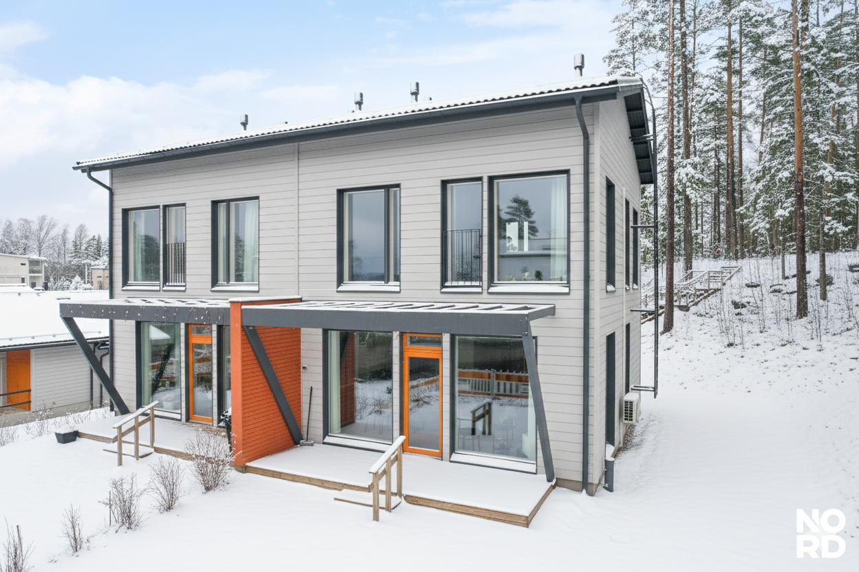 Tämä vuonna 2021 valmistunut paritalokoti tarjoaa ainutlaatuisen yhdistelmän luonnon rauhaa, modernia mukavuutta ja ajatonta estetiikkaa. Koti sijaitsee taloyhtiön parhaalla paikalla, pienen suojellun metsän laidassa.