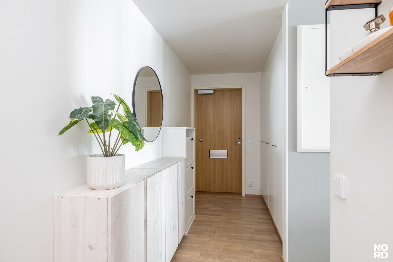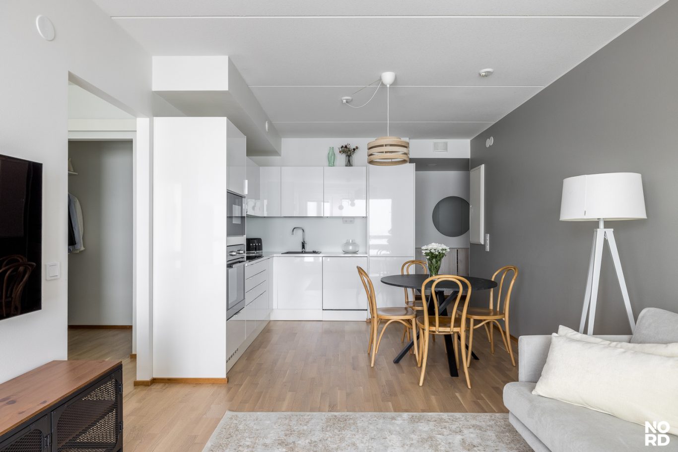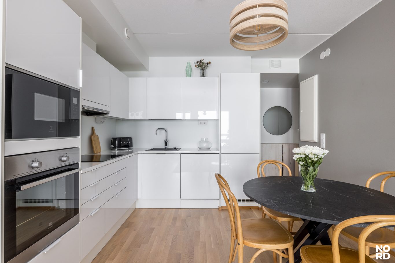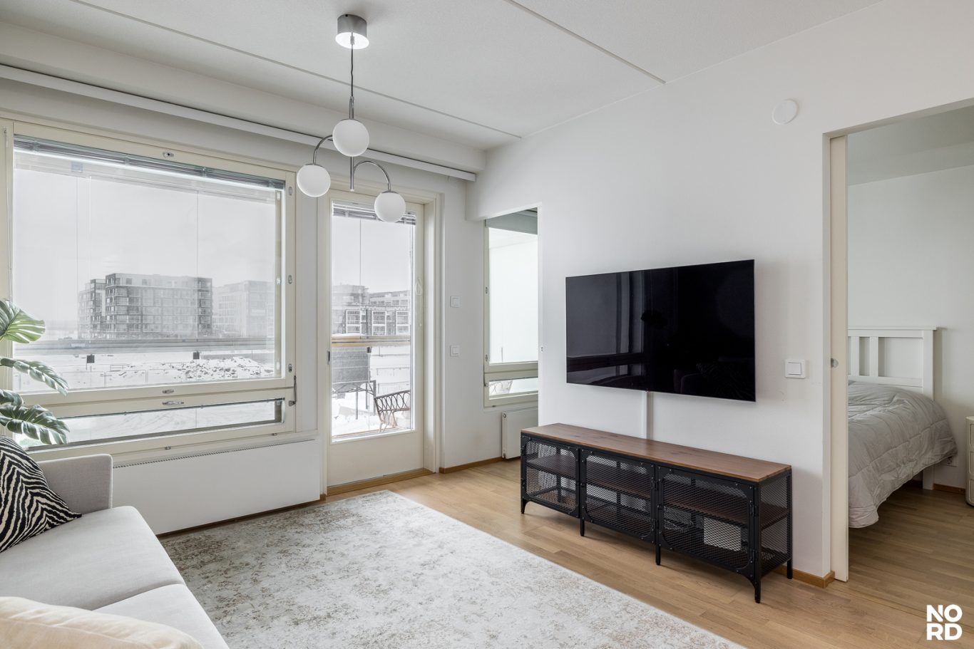 Kodin sydän on vaalea ja tyylikäs keittiö, joka yhdistyy saumattomasti oleskelutiloihin. Makuuhuoneessa arjen luksusta tuo liukuovellinen walk-in closet. Huoneistossa on myös kylpyhuone sekä sekä iso lasitettu parveke, josta maisevat toistuvat parhaiten.